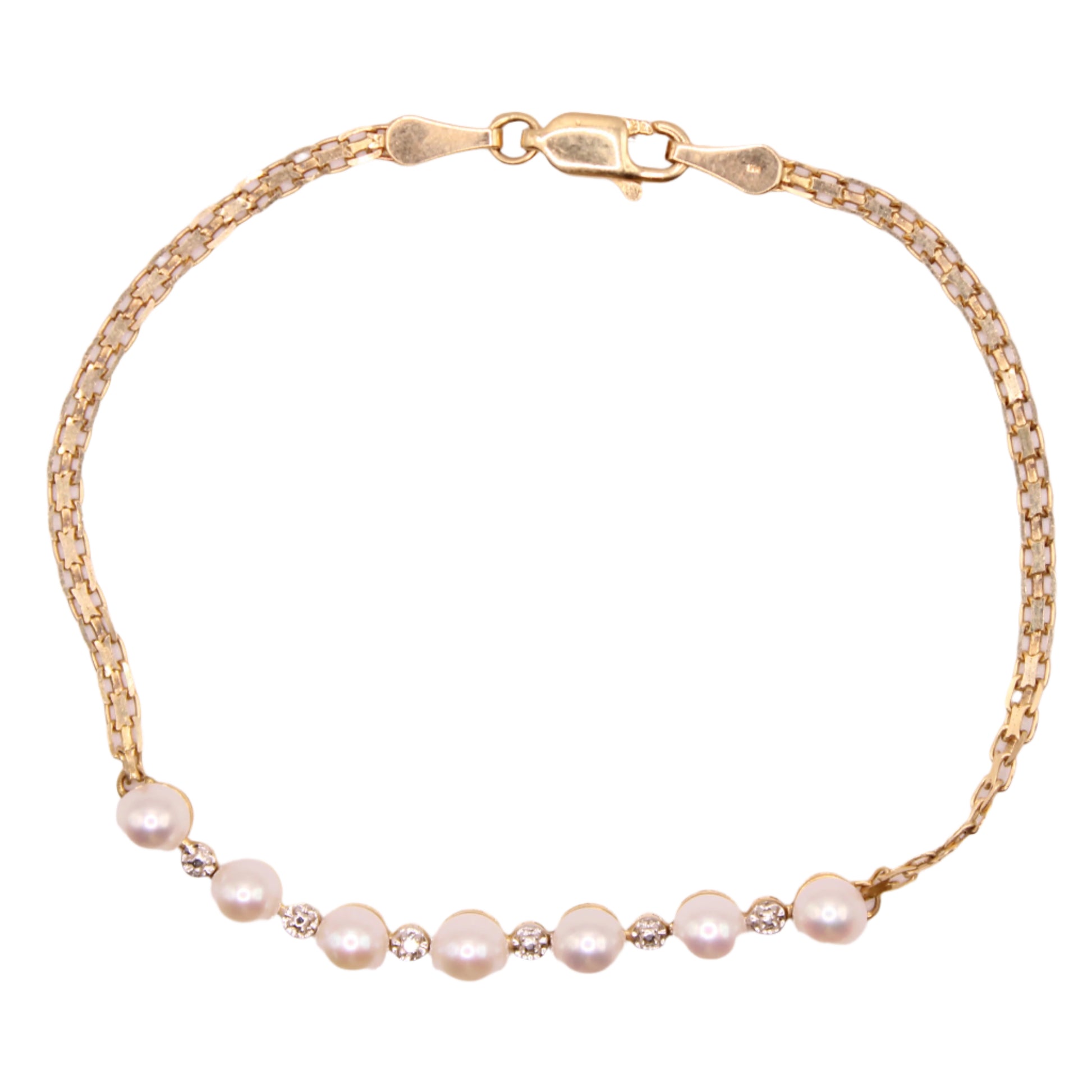 14k Yellow Gold Mexico Pearl Diamond Line Dainty Chain Bracelet 6.75"