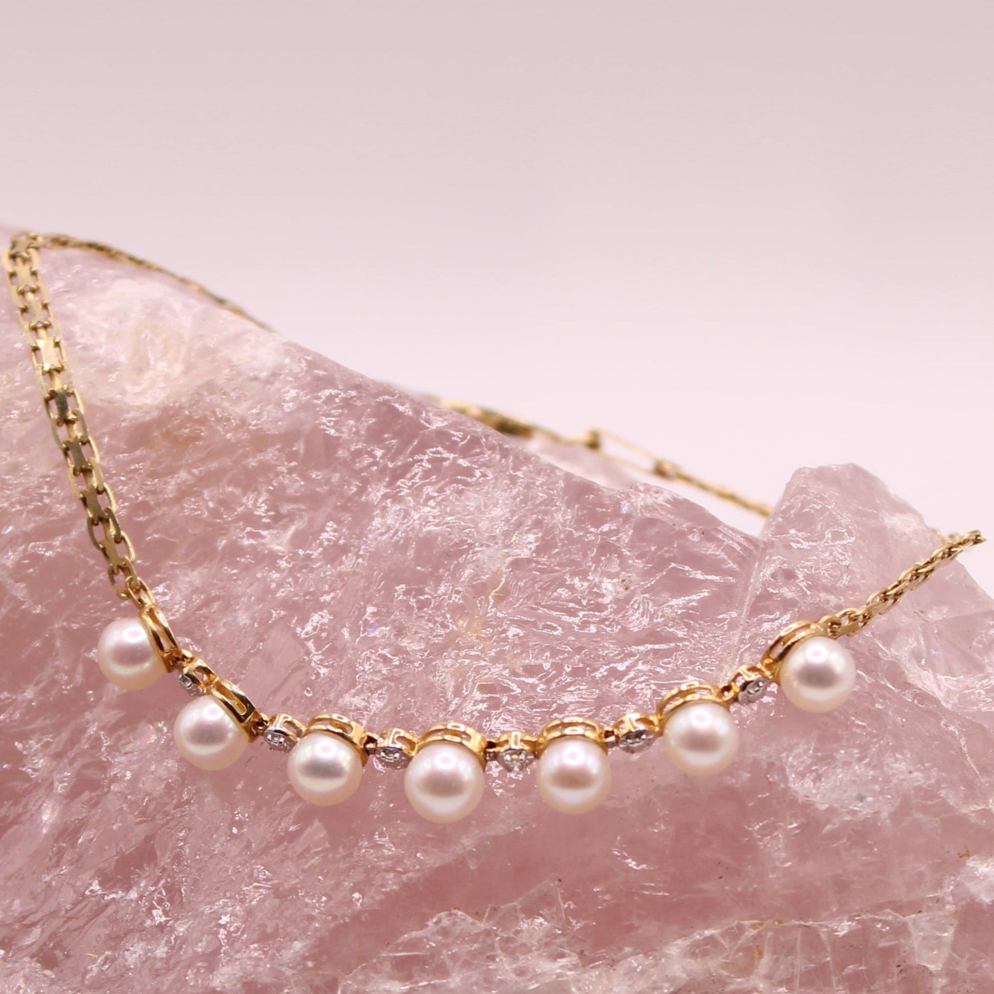 Treat yourself with this stunning diamond & pearl chain bracelet crafted in solid 14k gold.