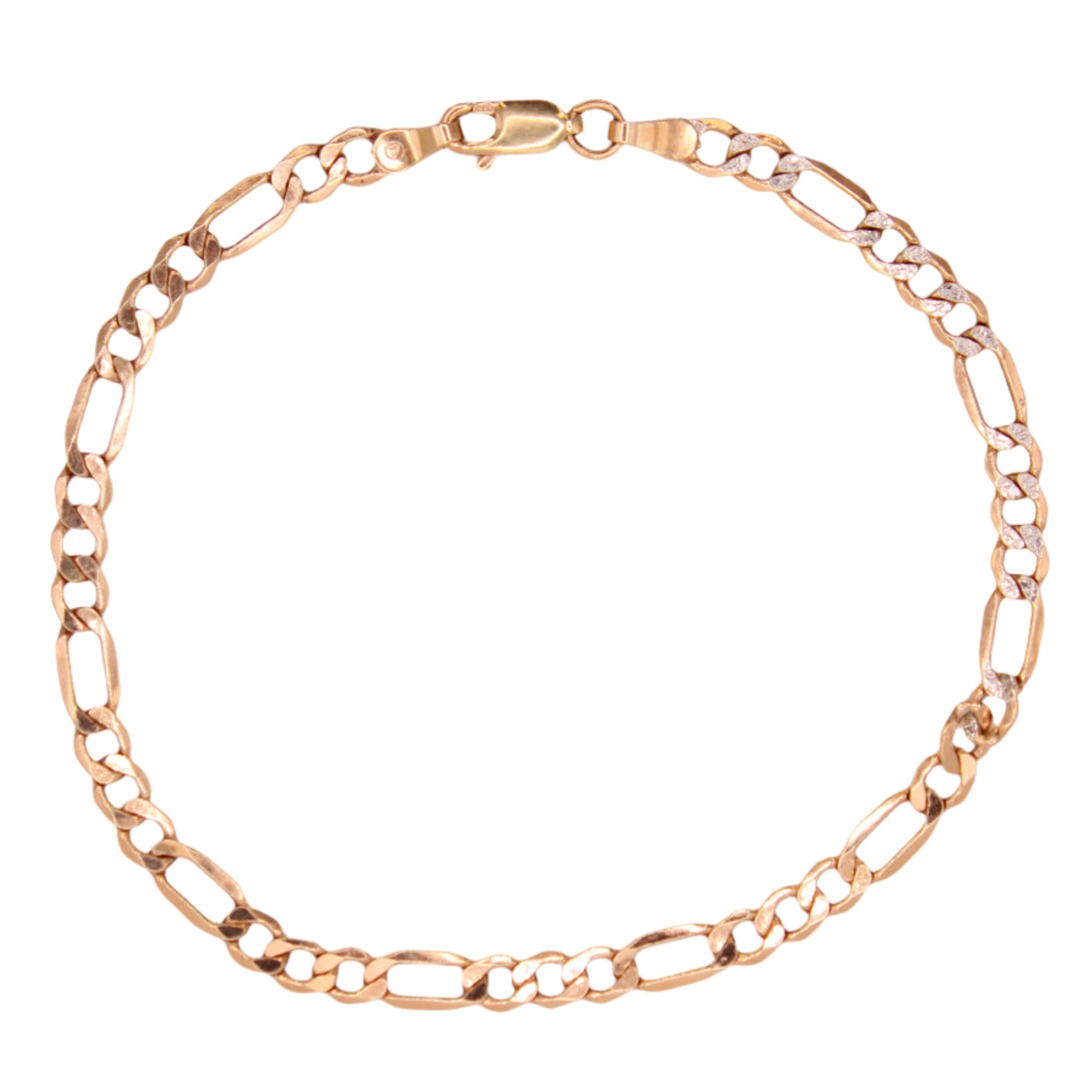 10kt Two Tone Rose White Gold Diamond Cut Figaro Chain Link Bracelet 8"