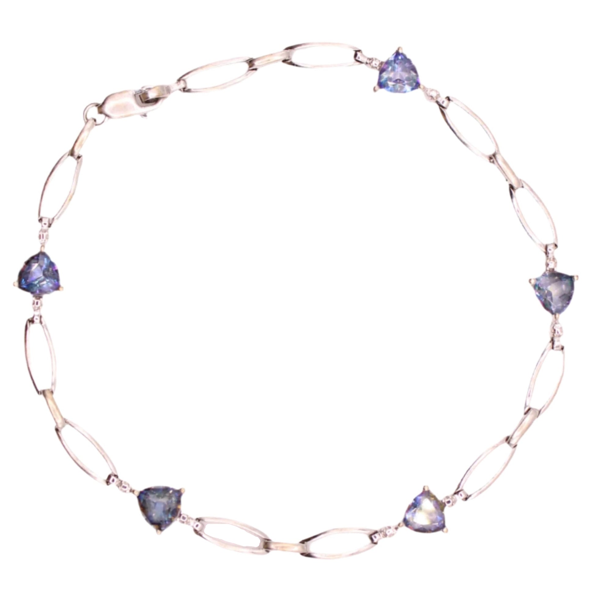 10kt White Gold Mystic Topaz Trillion Open Loop Link Bracelet