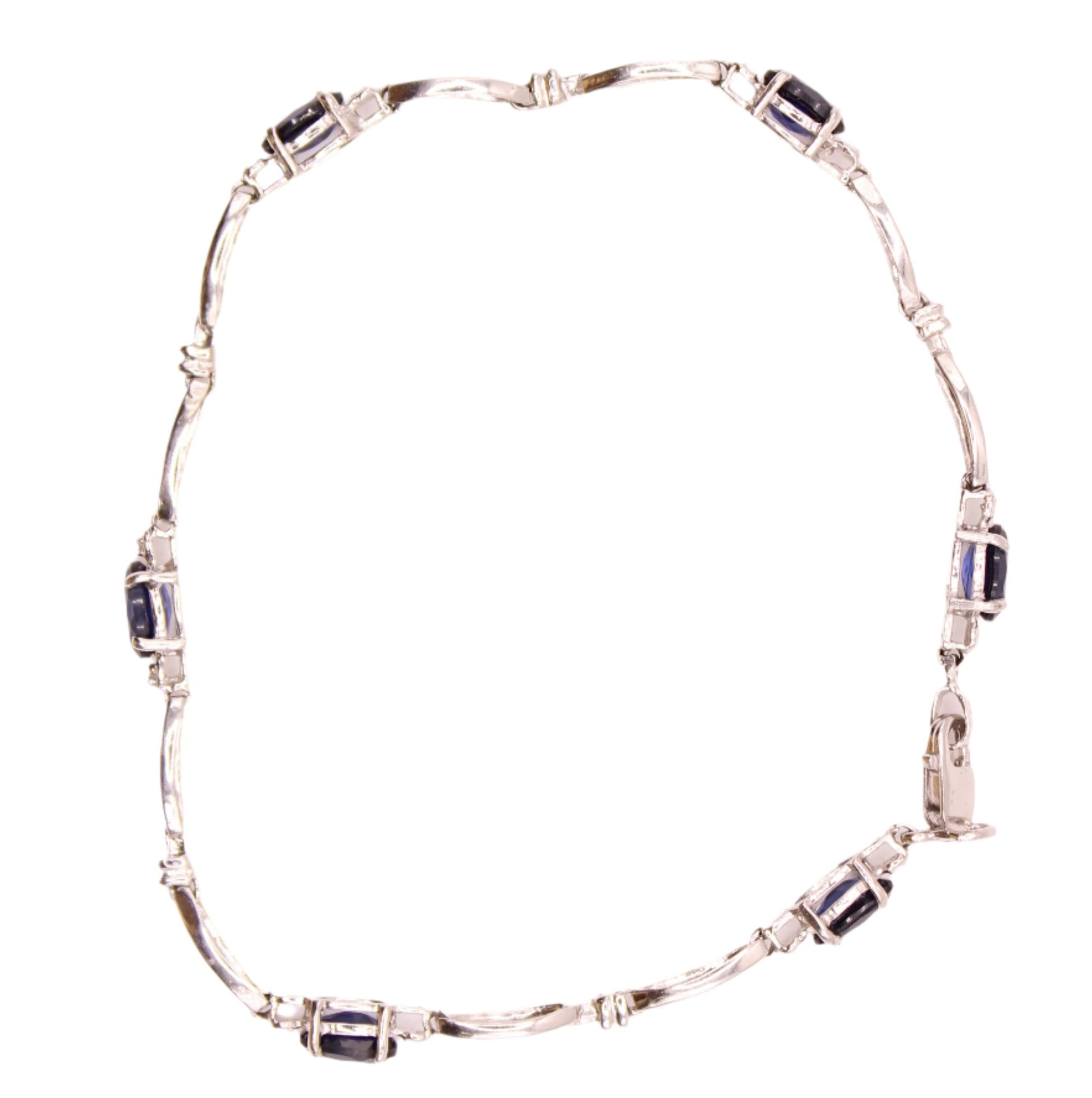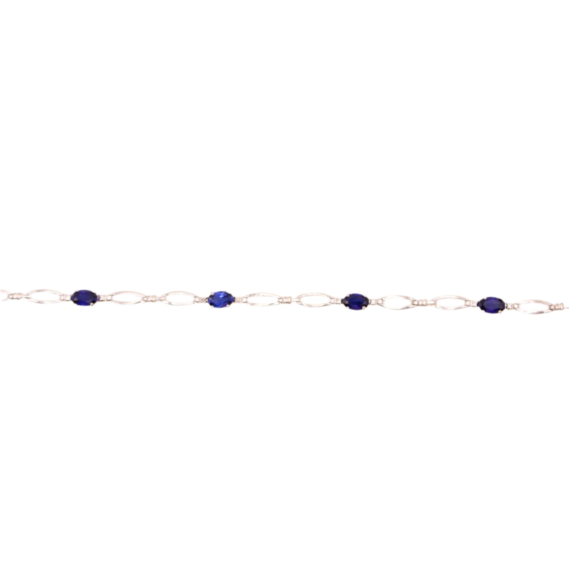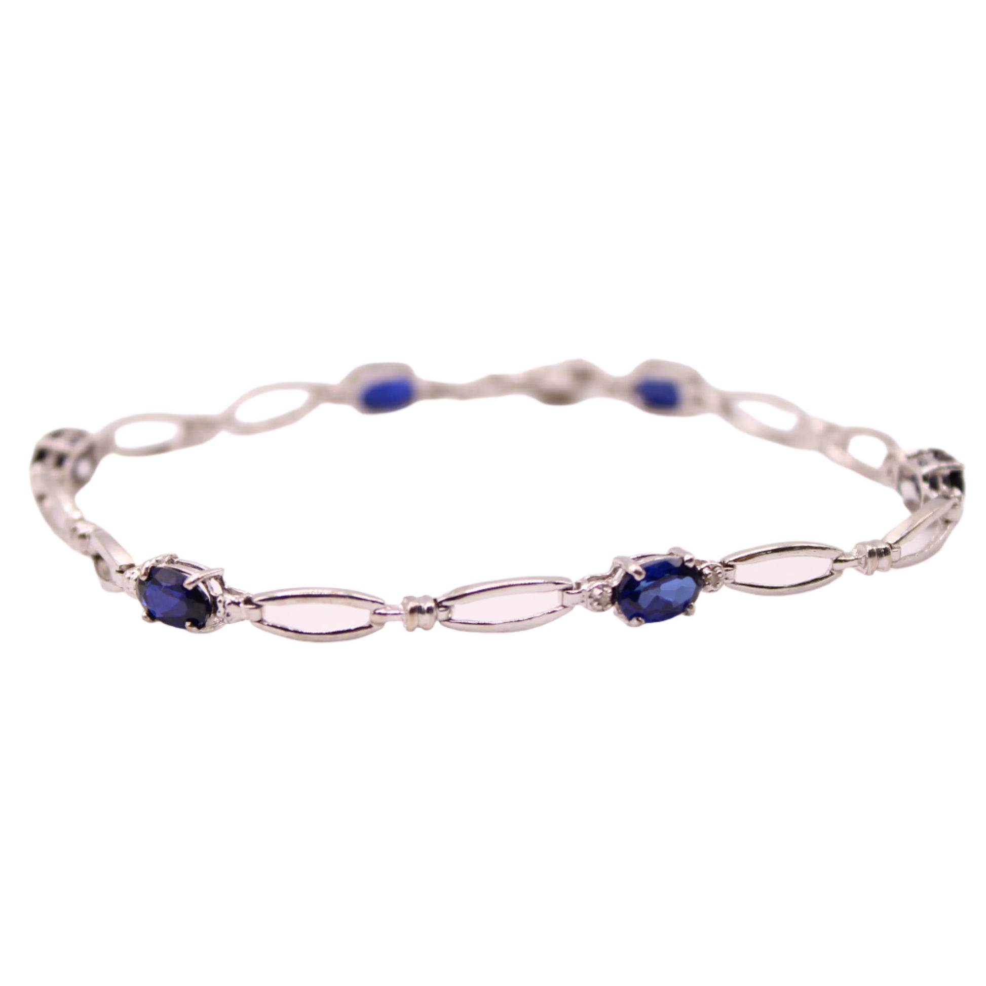 10kt White Gold Lab Sapphire Diamond Accent Open Loop Link Bracelet