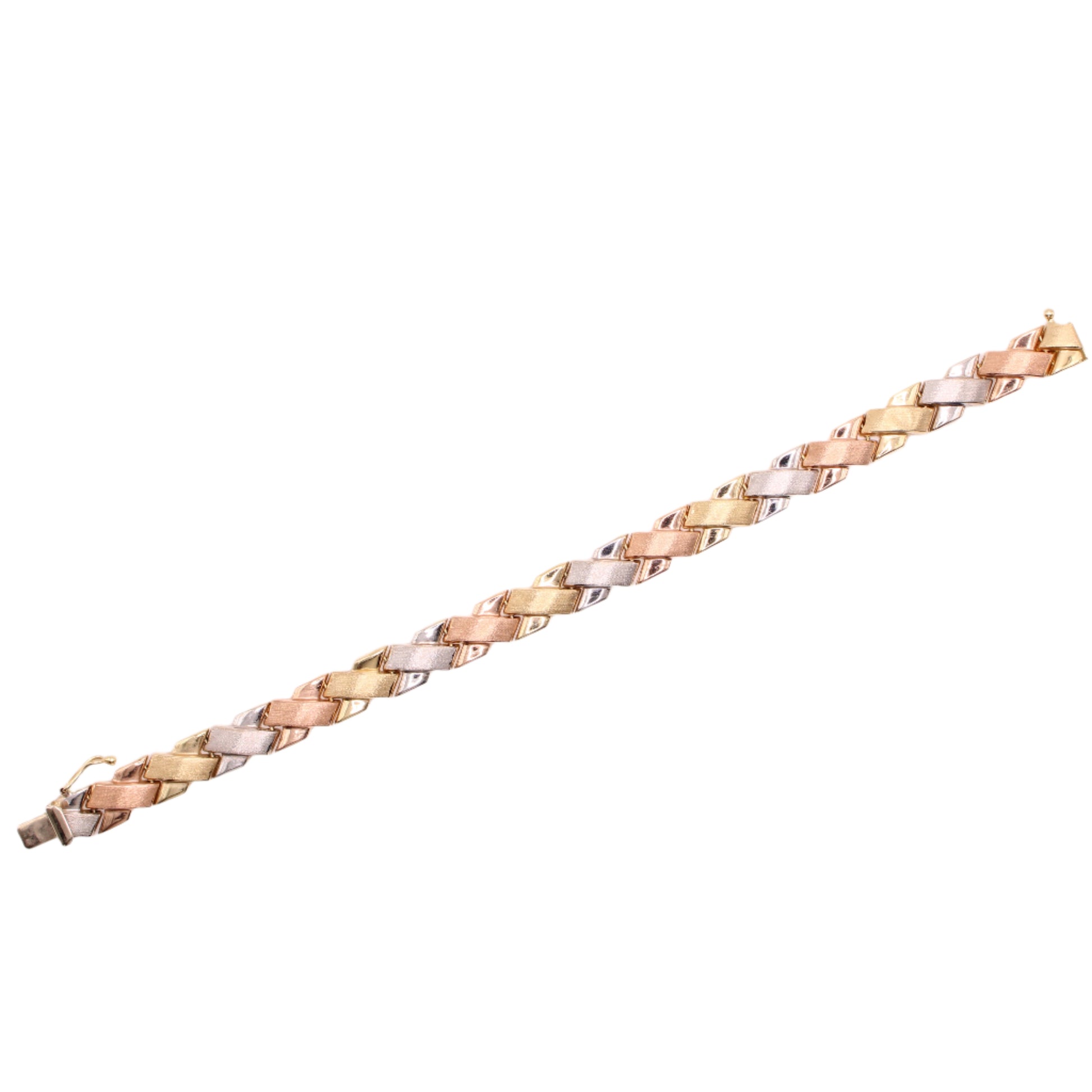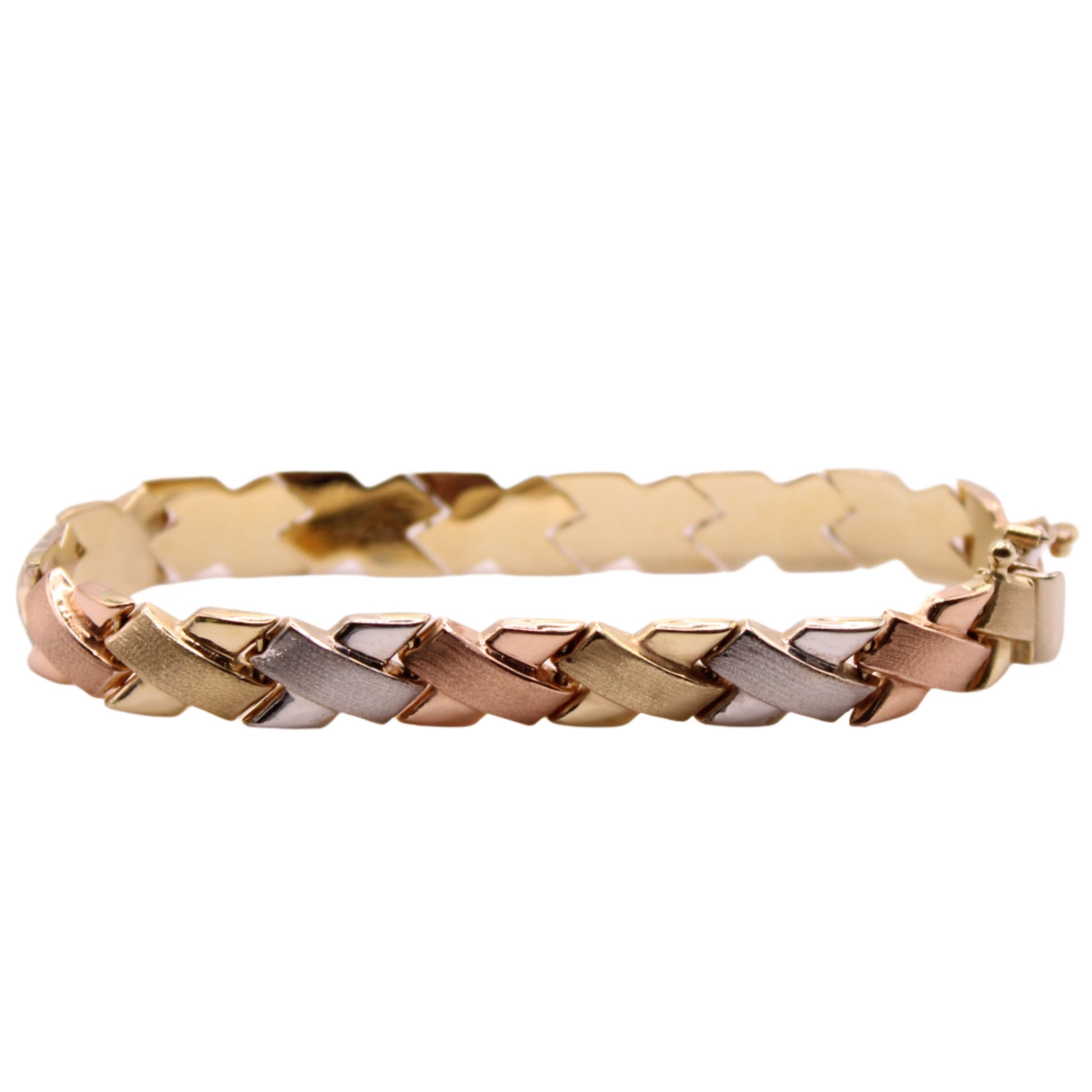 Aurafin 14kt Tri Color Yellow White Rose Gold Brushed X Link Bracelet