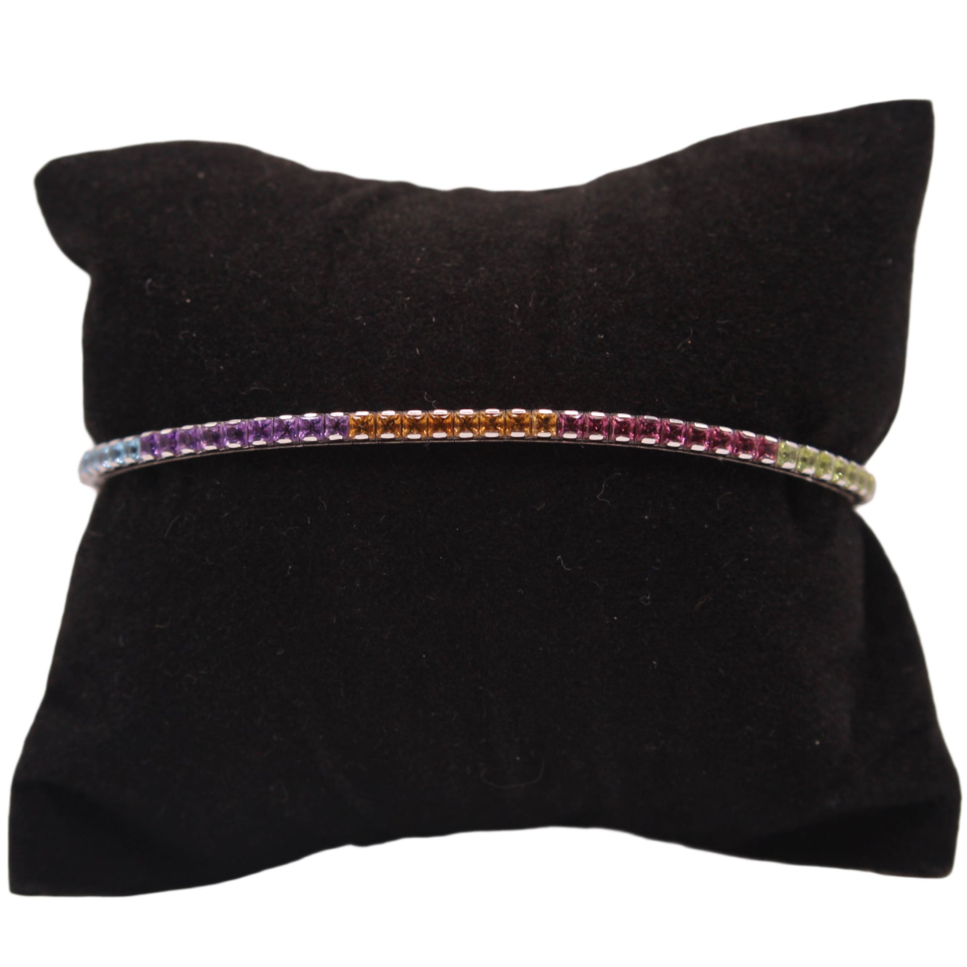 10kt White Gold Rainbow Multi Color Sapphire Tennis Bracelet 7.25"