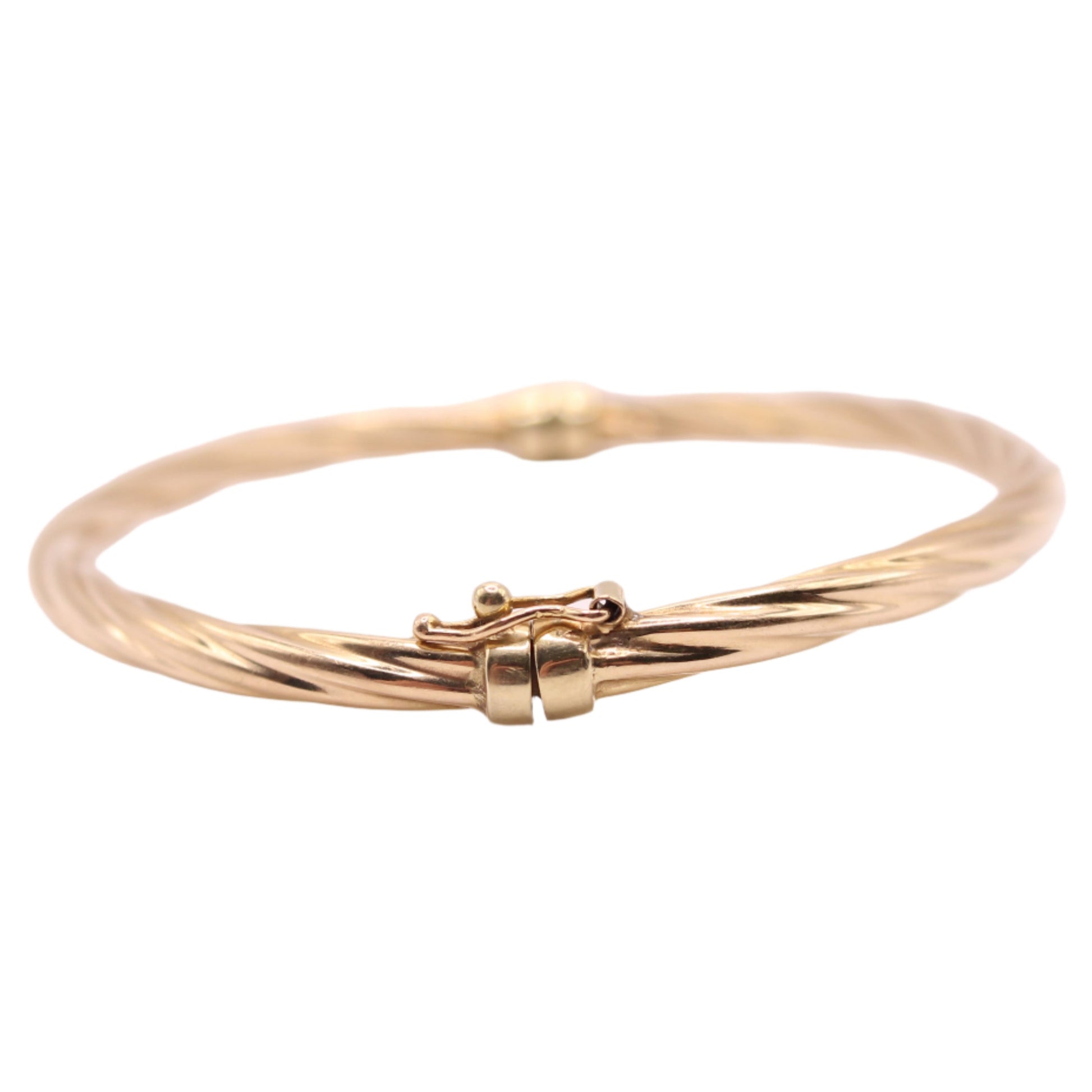 UnoAerre 14kt Yellow Gold Twist Cable 4mm Hinged Bangle Bracelet