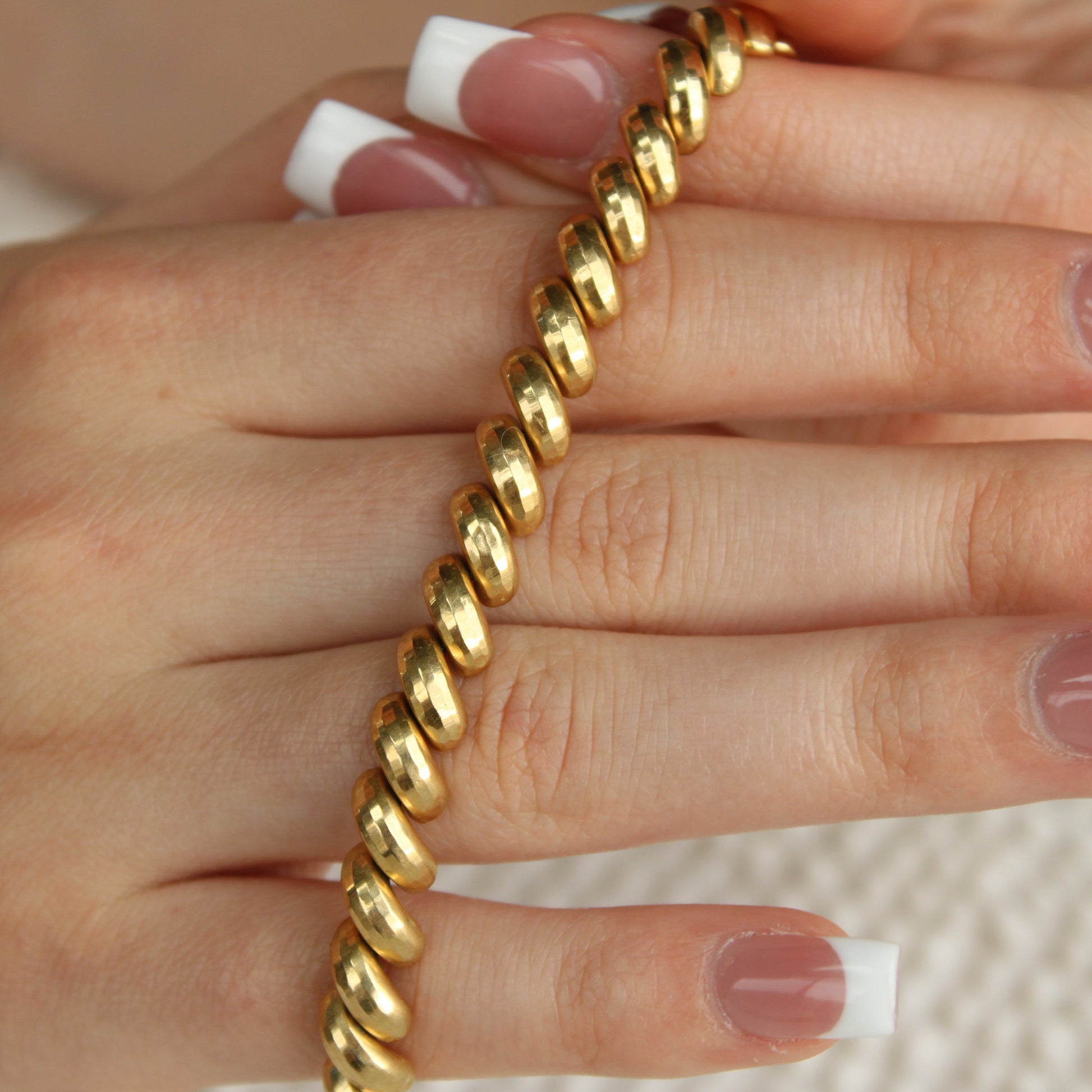 Spoil yourself with this classic San Marco link bracelet with faceted diamond cut finish by Bailey Banks & Biddle crafted in solid 14k yellow gold.