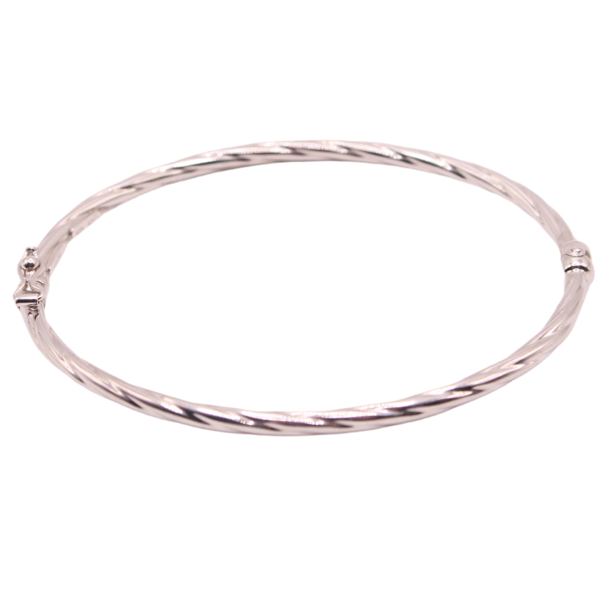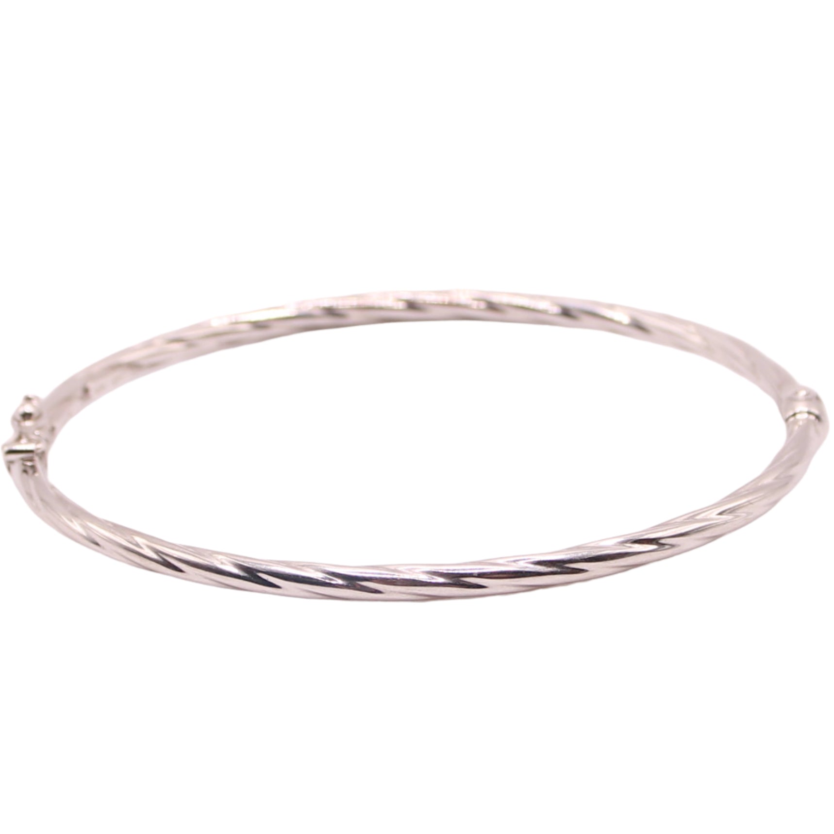 *SOLD* Milros 14k White Gold Twist Cable 3mm Hinged Bangle Bracelet 7"