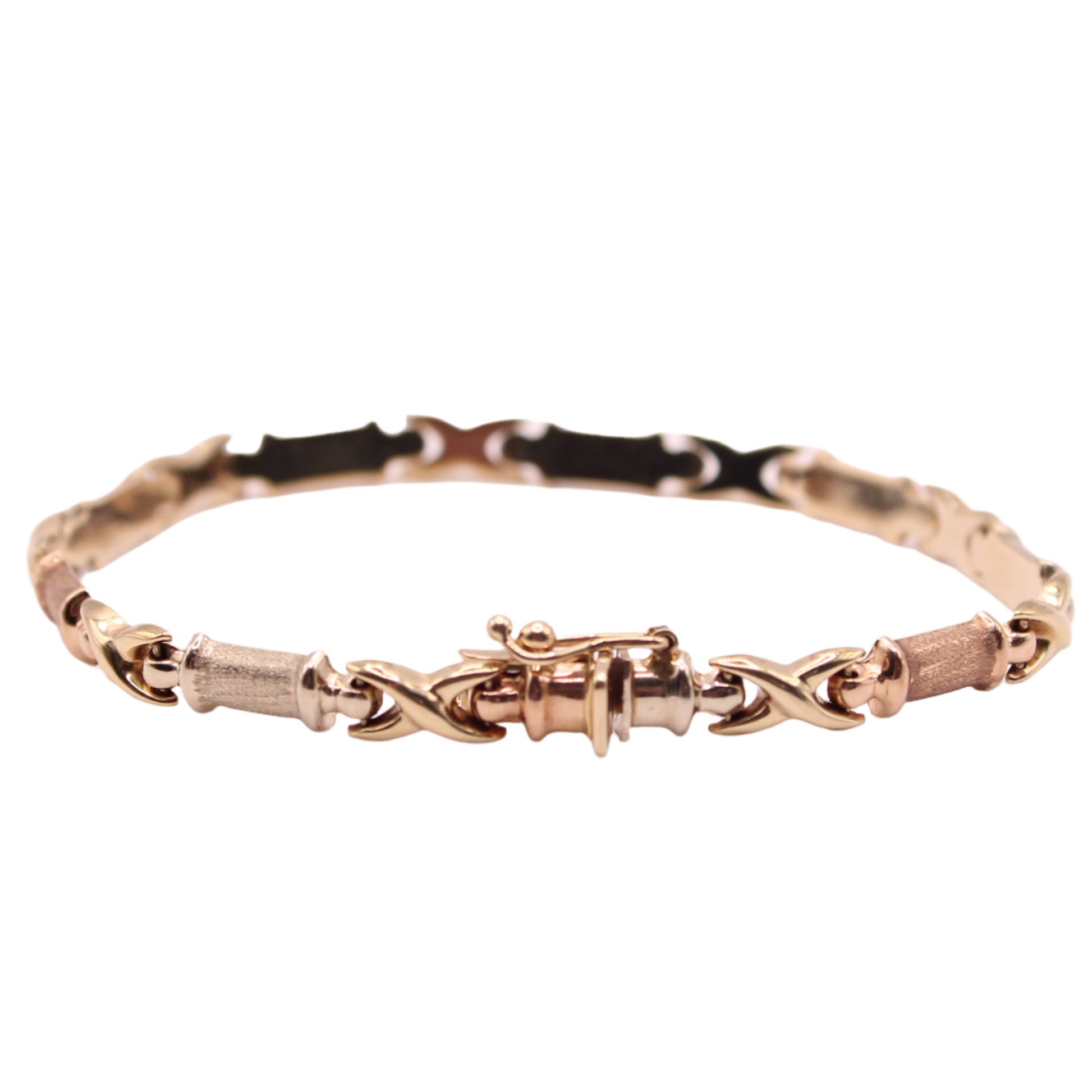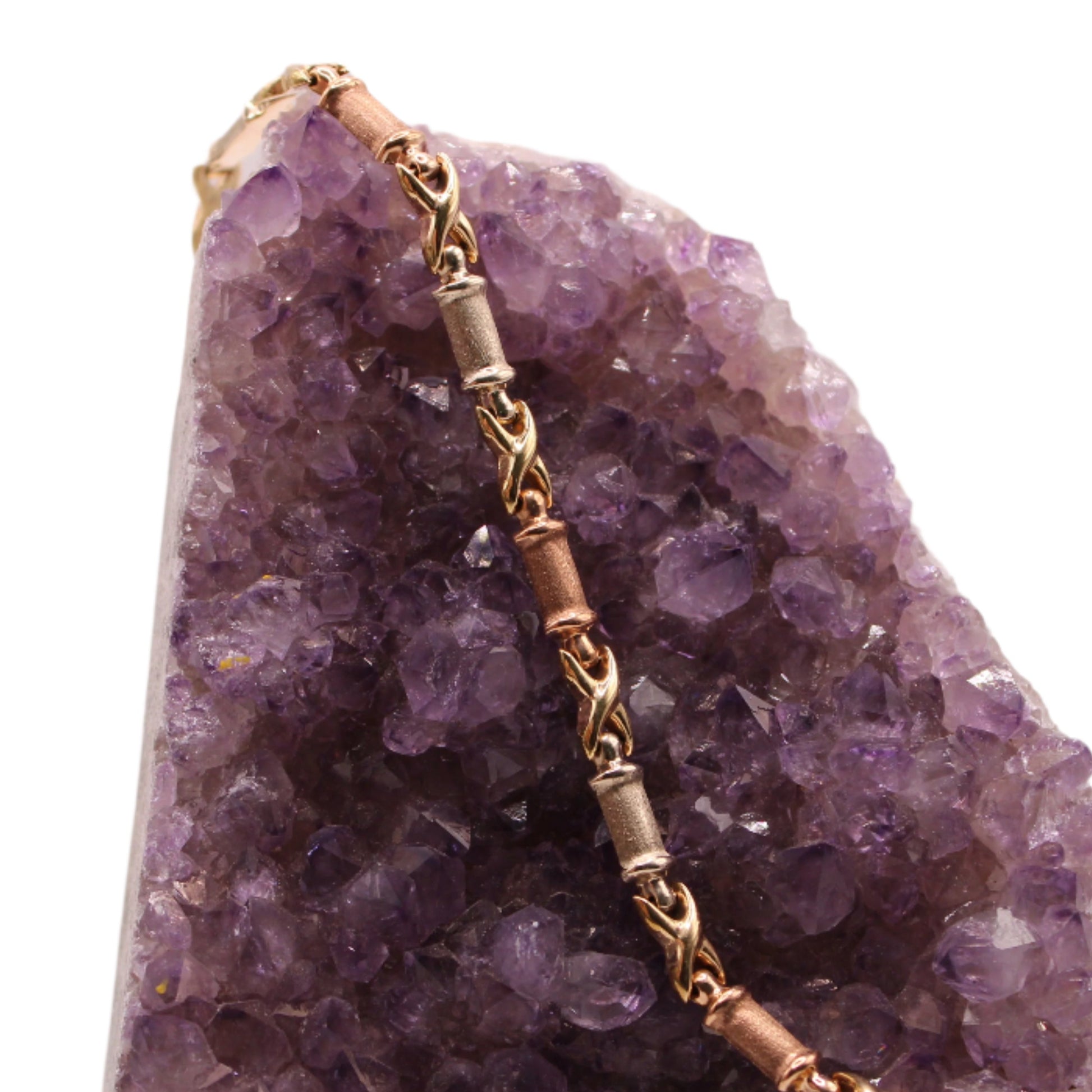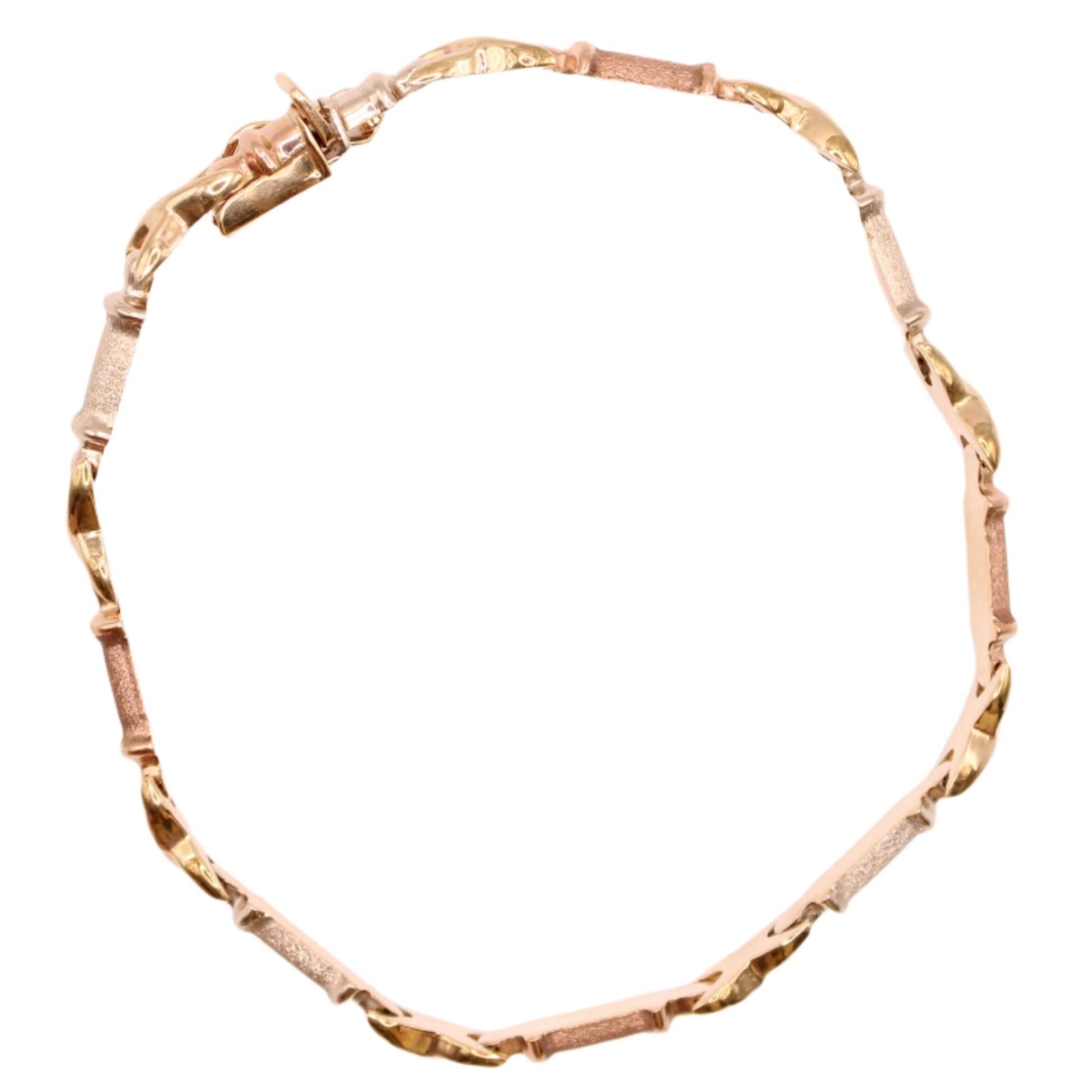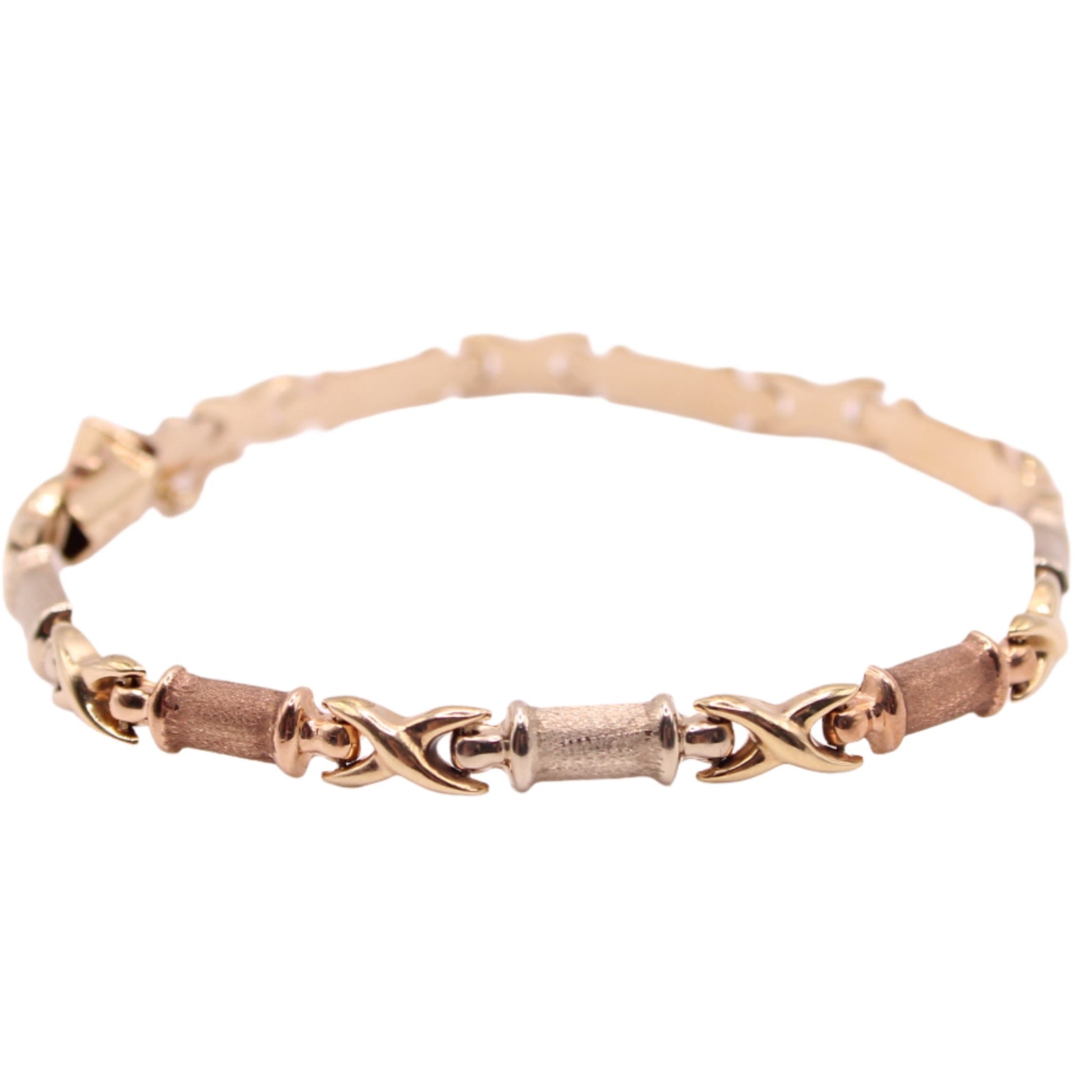 Treat yourself with this lovely Tri-Color link bracelet crafted in solid 10k yellow, white & rose gold.