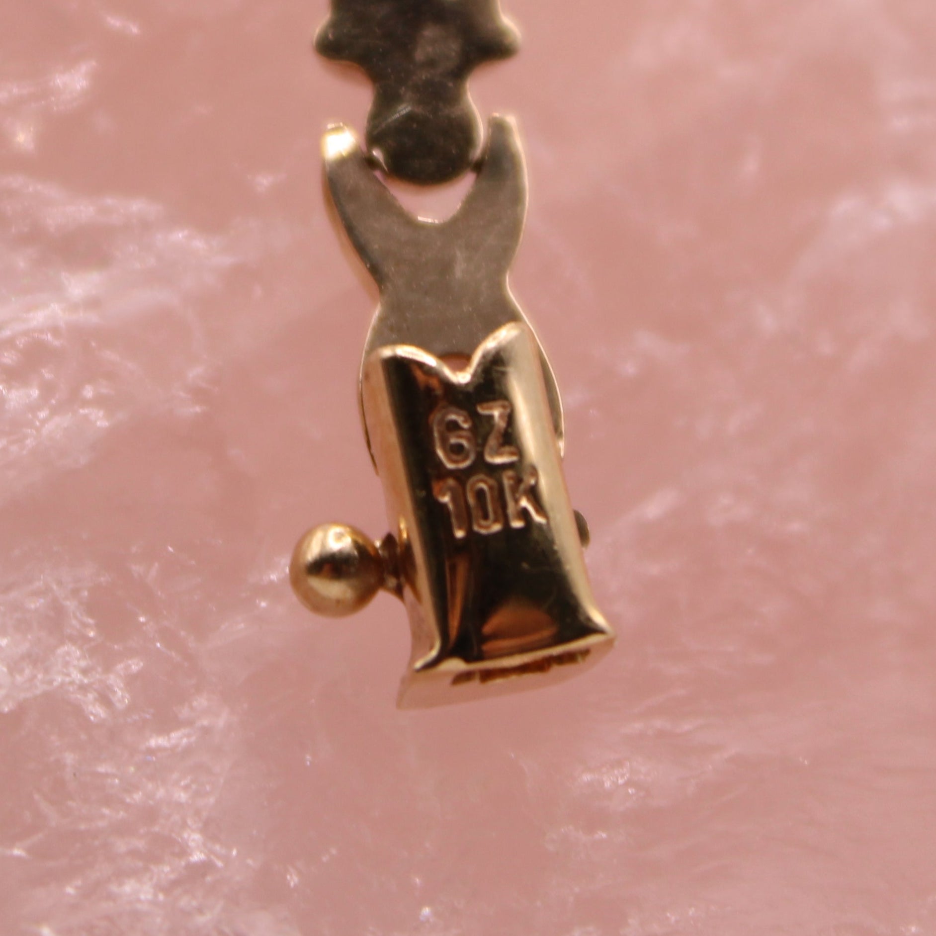 10kt Tricolor Yellow White Rose Cross Box Puffed Chain Link Bracelet 6.75"