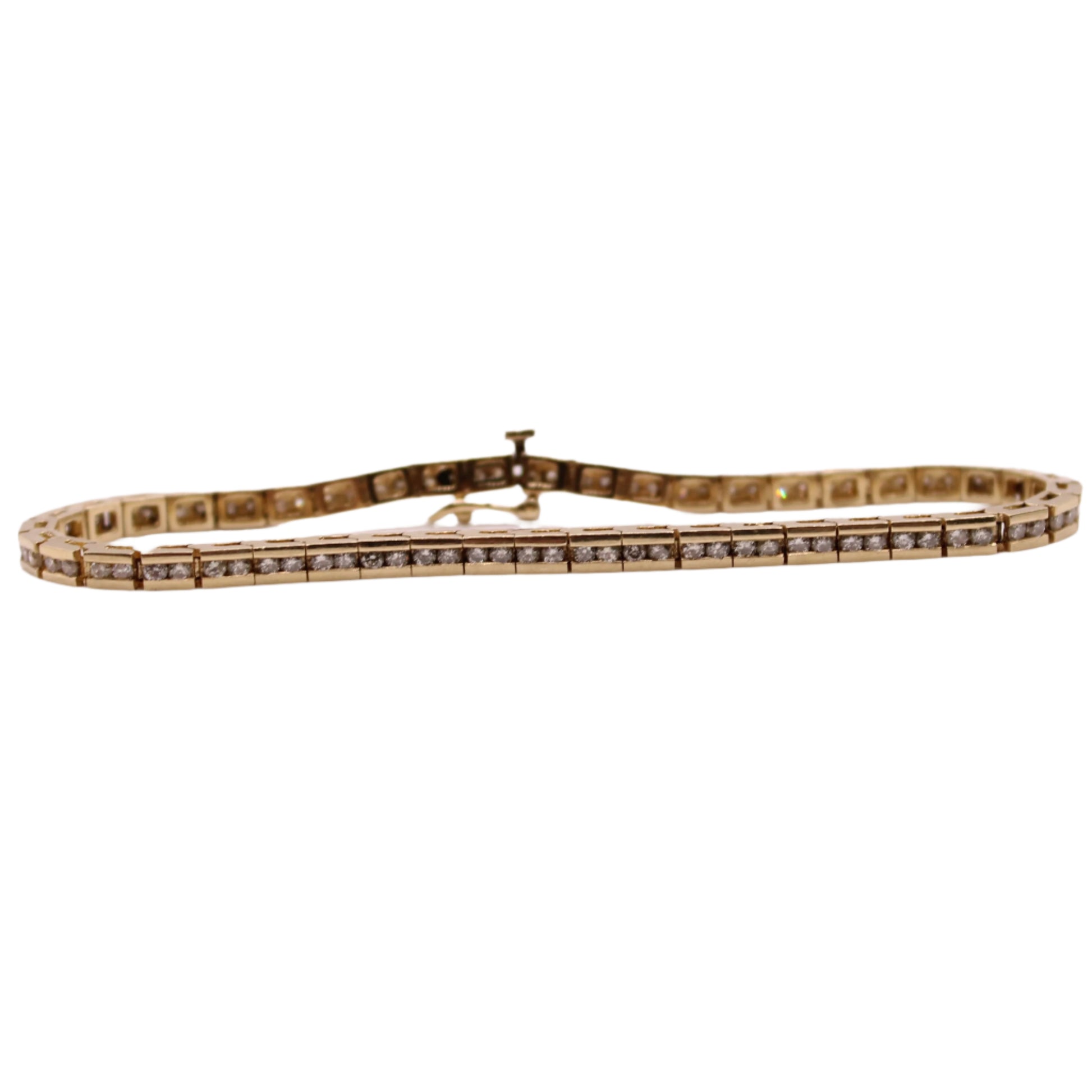 Treat yourself with this lovely channel set diamond tennis bracelet crafted in solid 14kt yellow gold.