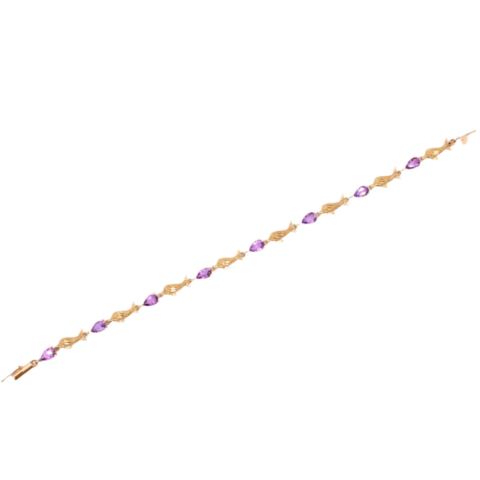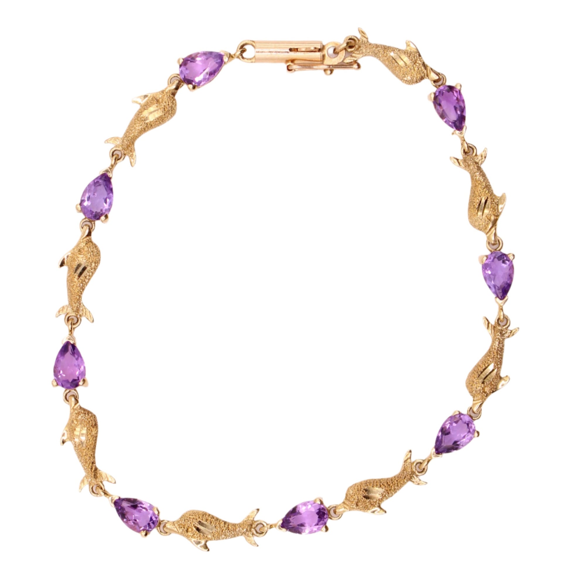Spoil a dolphin lover with this Aurafin Dolphin & Amethyst link bracelet crafted in solid 14k yellow gold.