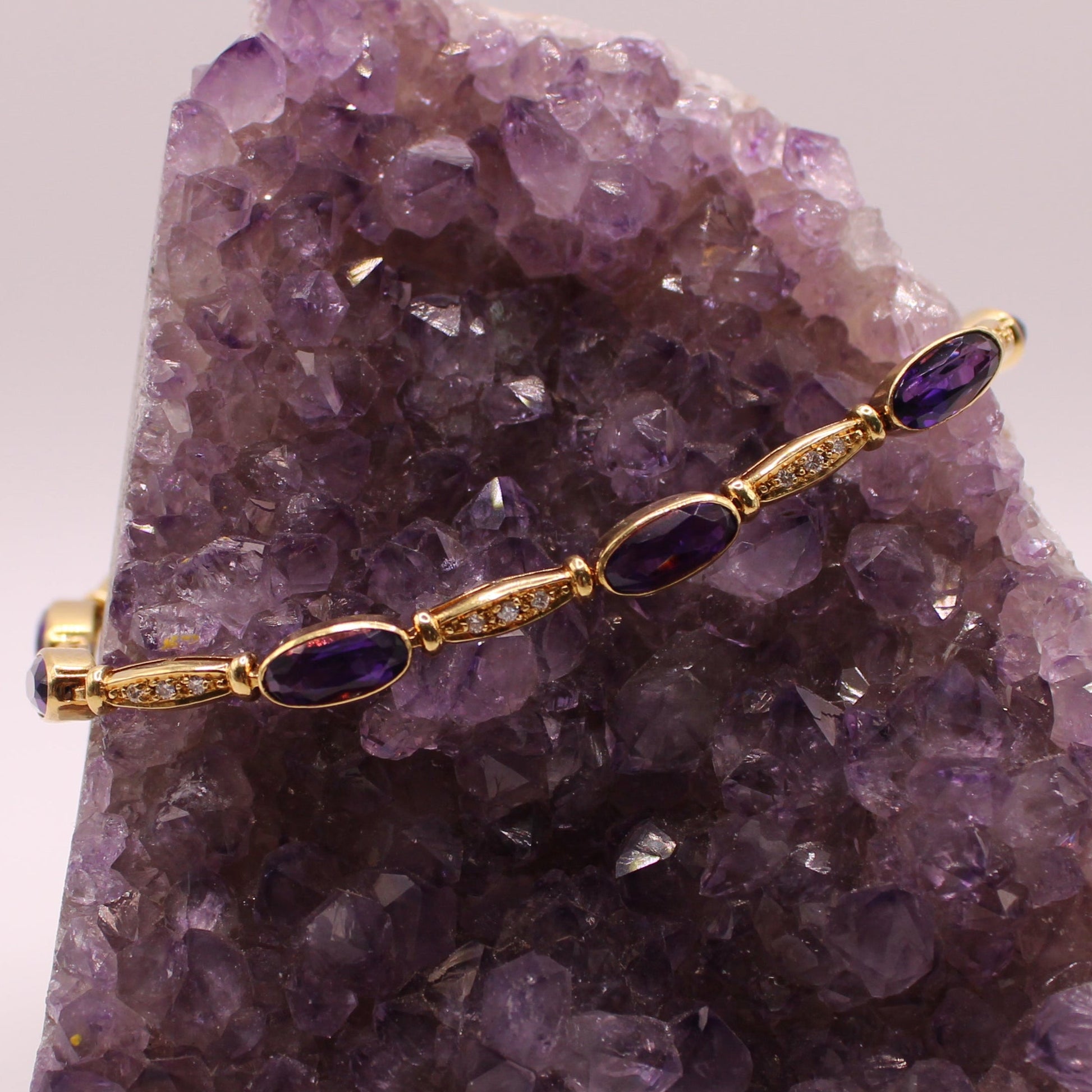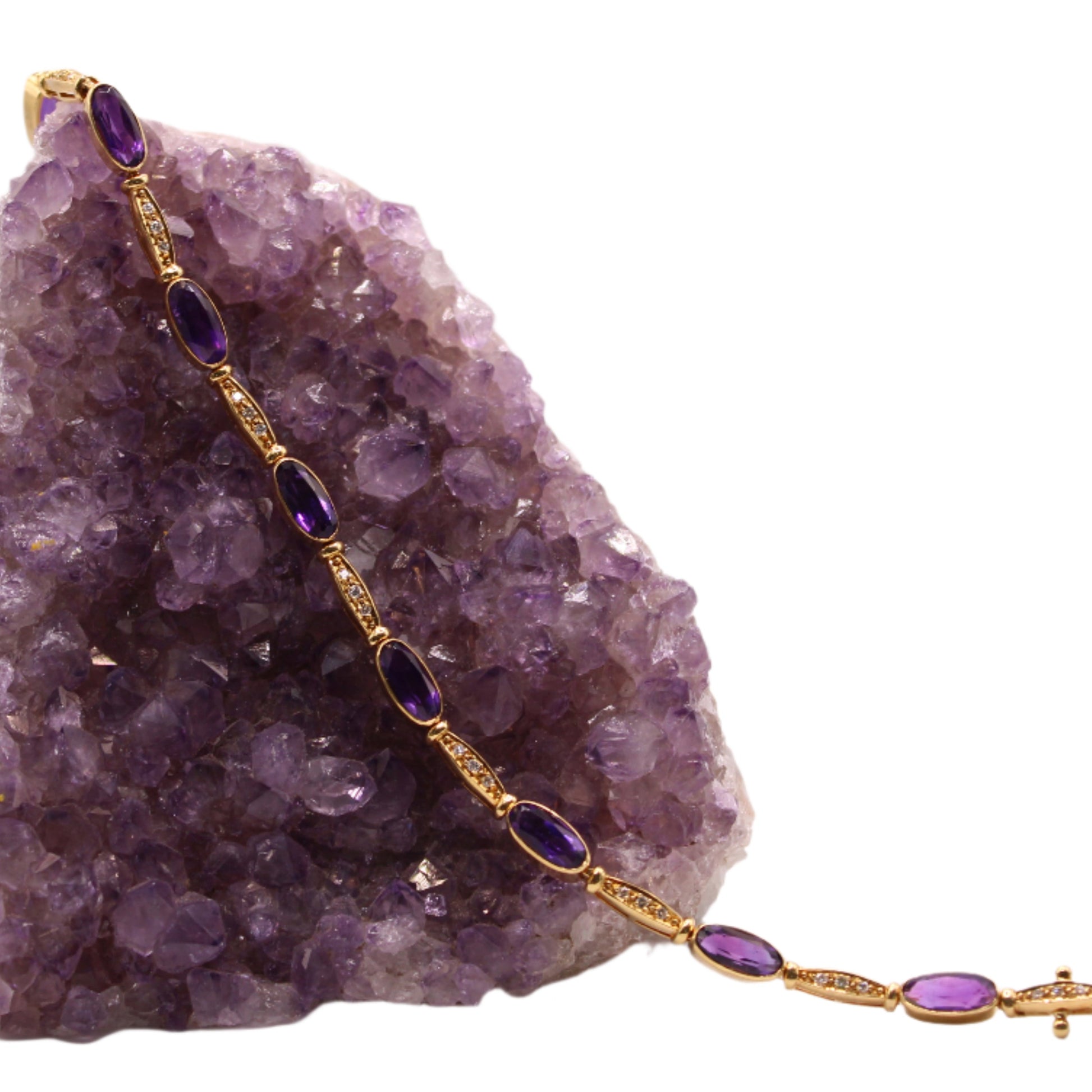 Spoil yourself with this gorgeous diamond & amethyst bracelet crafted in solid 18kt yellow gold. Incredible craftsmanship and stunning details!