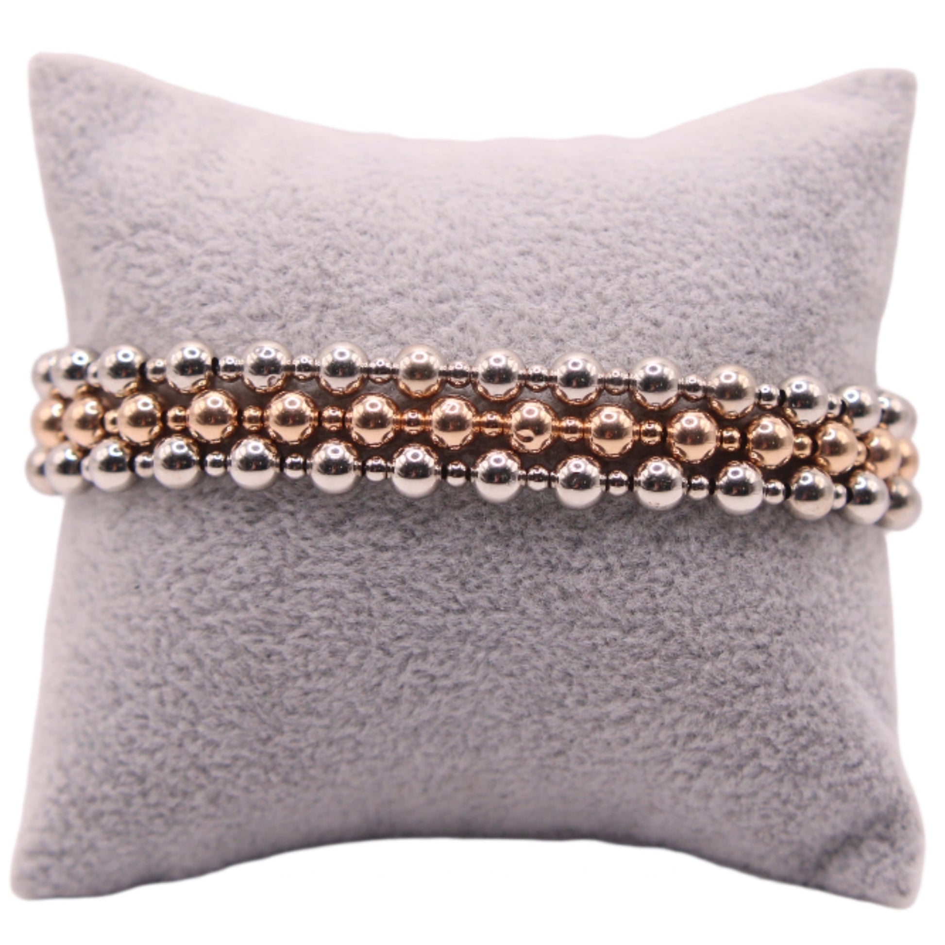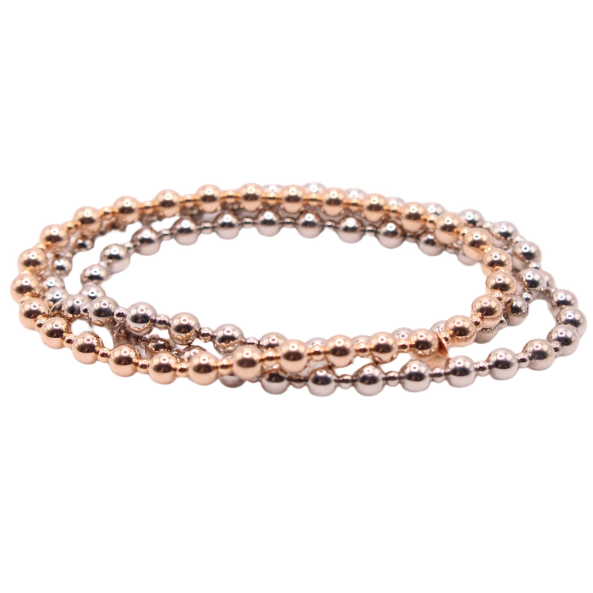 *SOLD* Ralph Lauren 14kt Rose & White Gold Bead Stretch Bracelet 3 Set