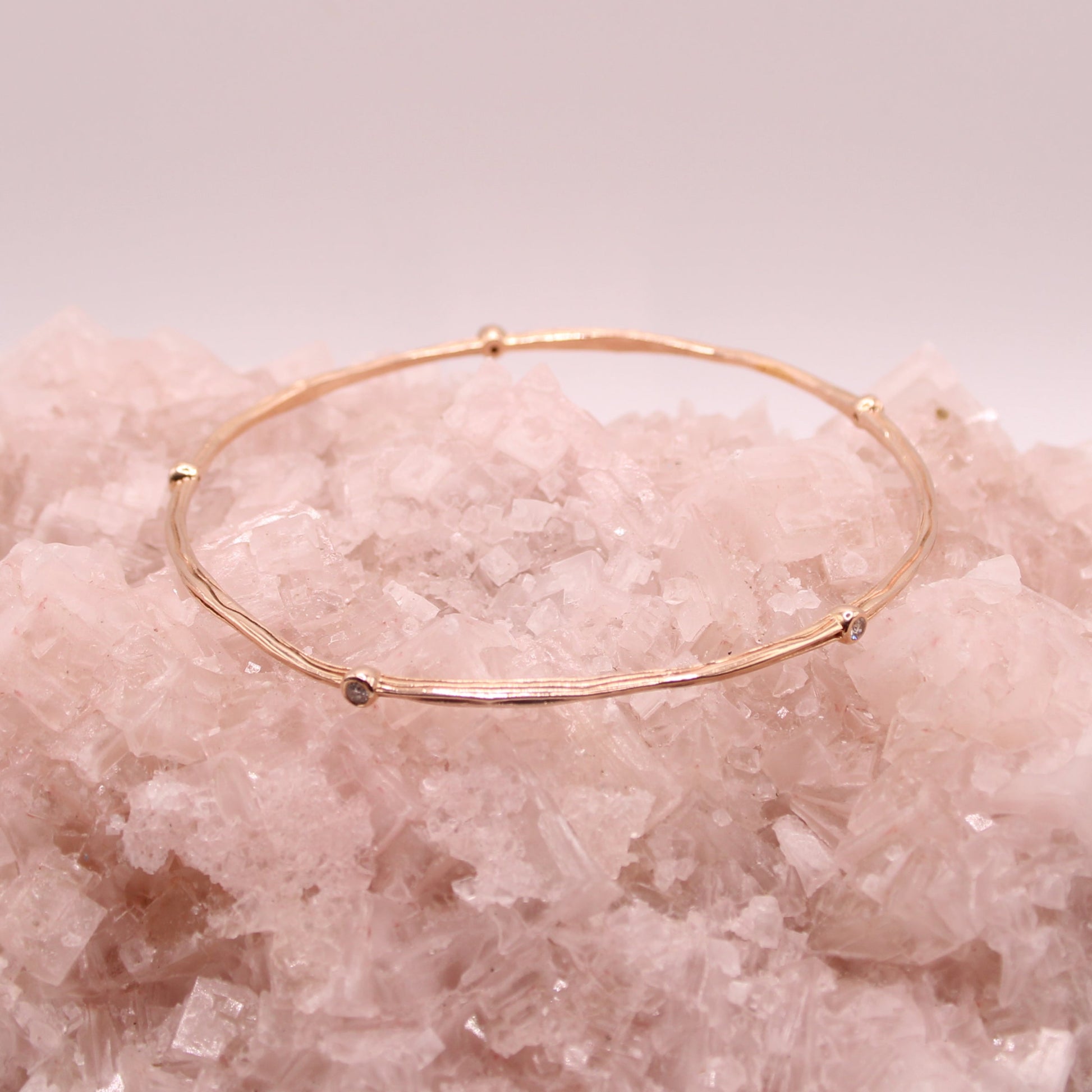 Treat yourself with this gorgeous rose gold diamond station bangle crafted in solid 14k gold.