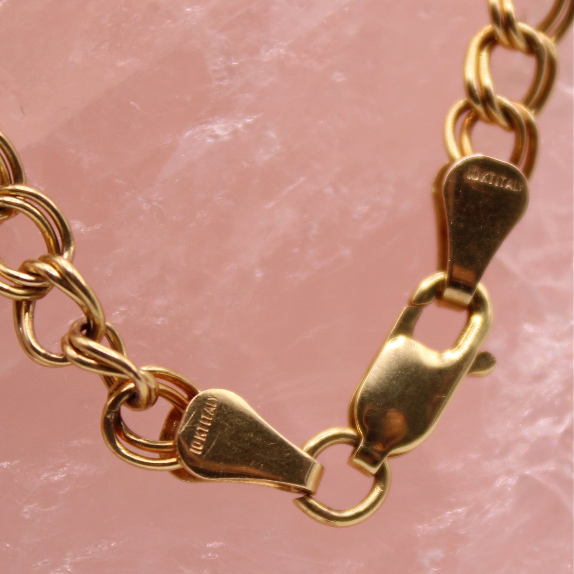 10kt Yellow Gold Italy Double Round Link Chain Charm Bracelet