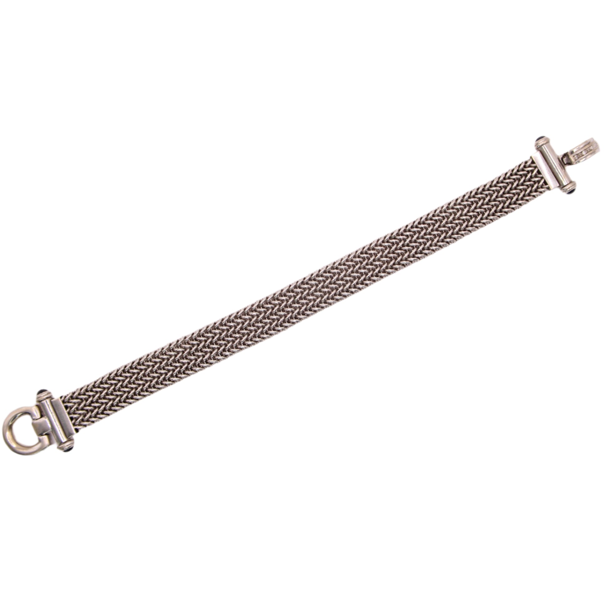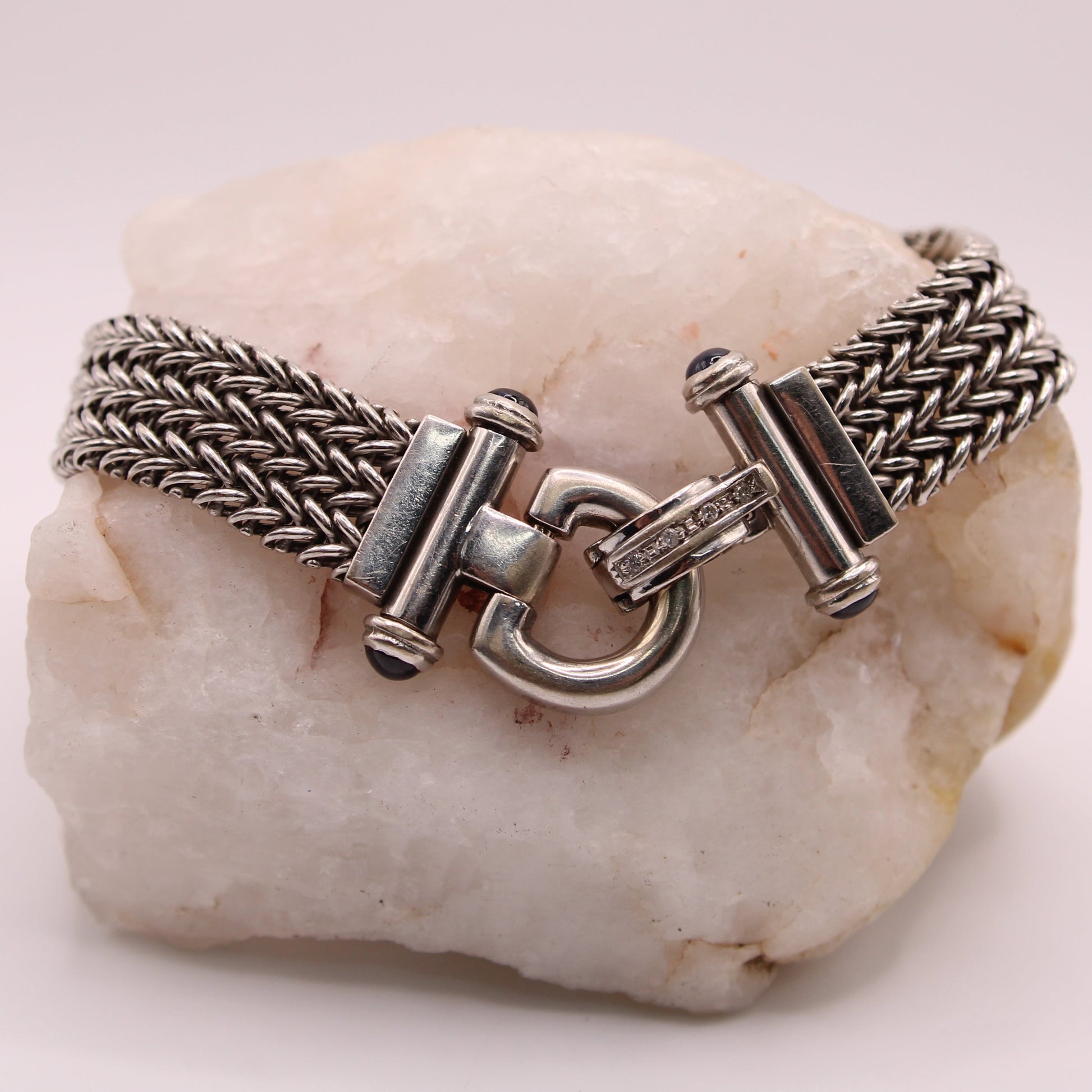 Vintage 14kt White Gold Diamond Sapphire Buckle Wheat Franco Bracelet 7.5"
