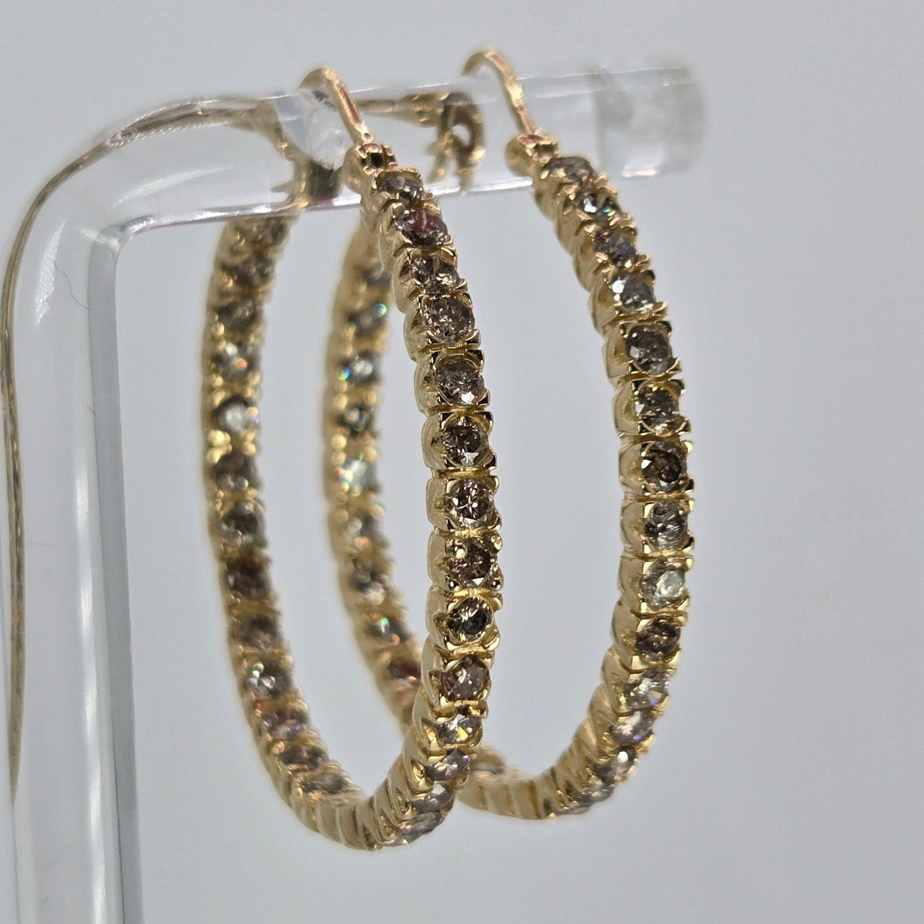 Absolutely stunning champagne diamond inside out hoop earrings crafted in solid 14k gold.