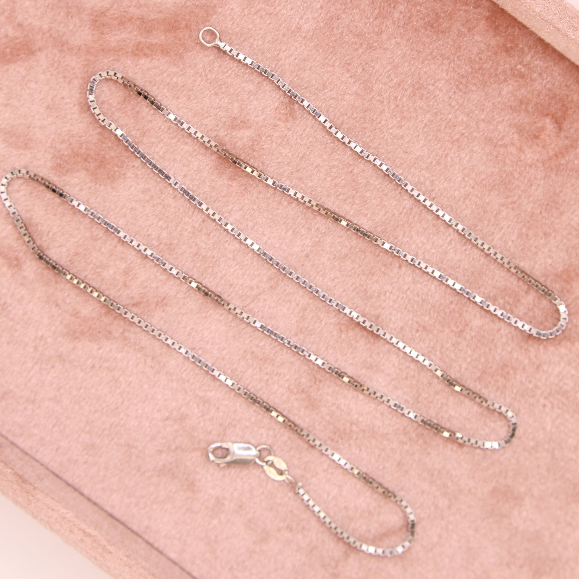 14kt White Gold Venetian Box Link Chain Necklace 18"