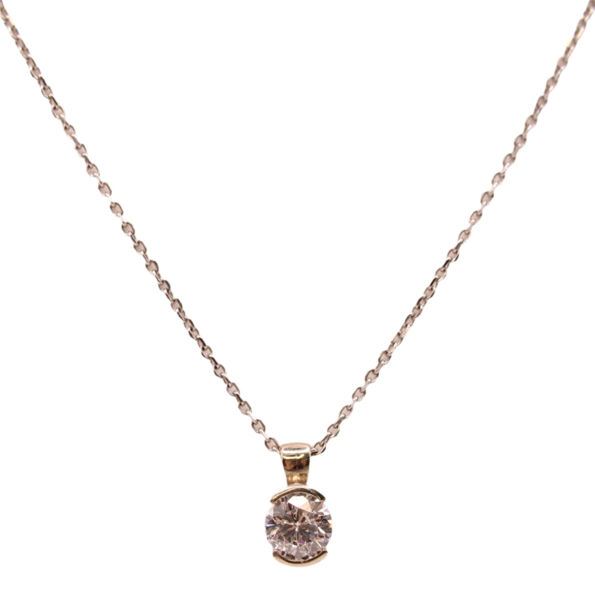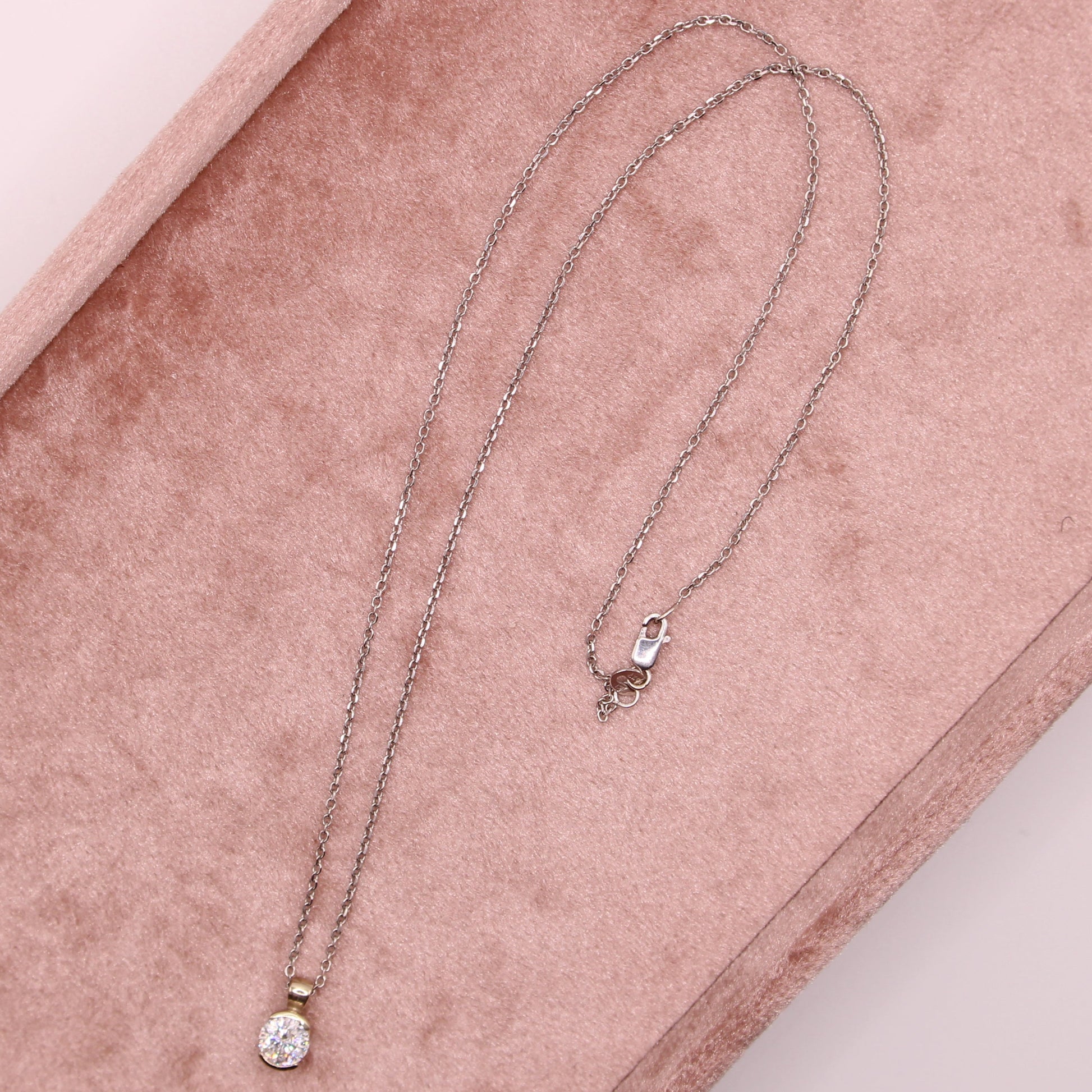 14kt White Gold Diamond Pressure Set 0.58ct Solitaire Chain Link Necklace 16"