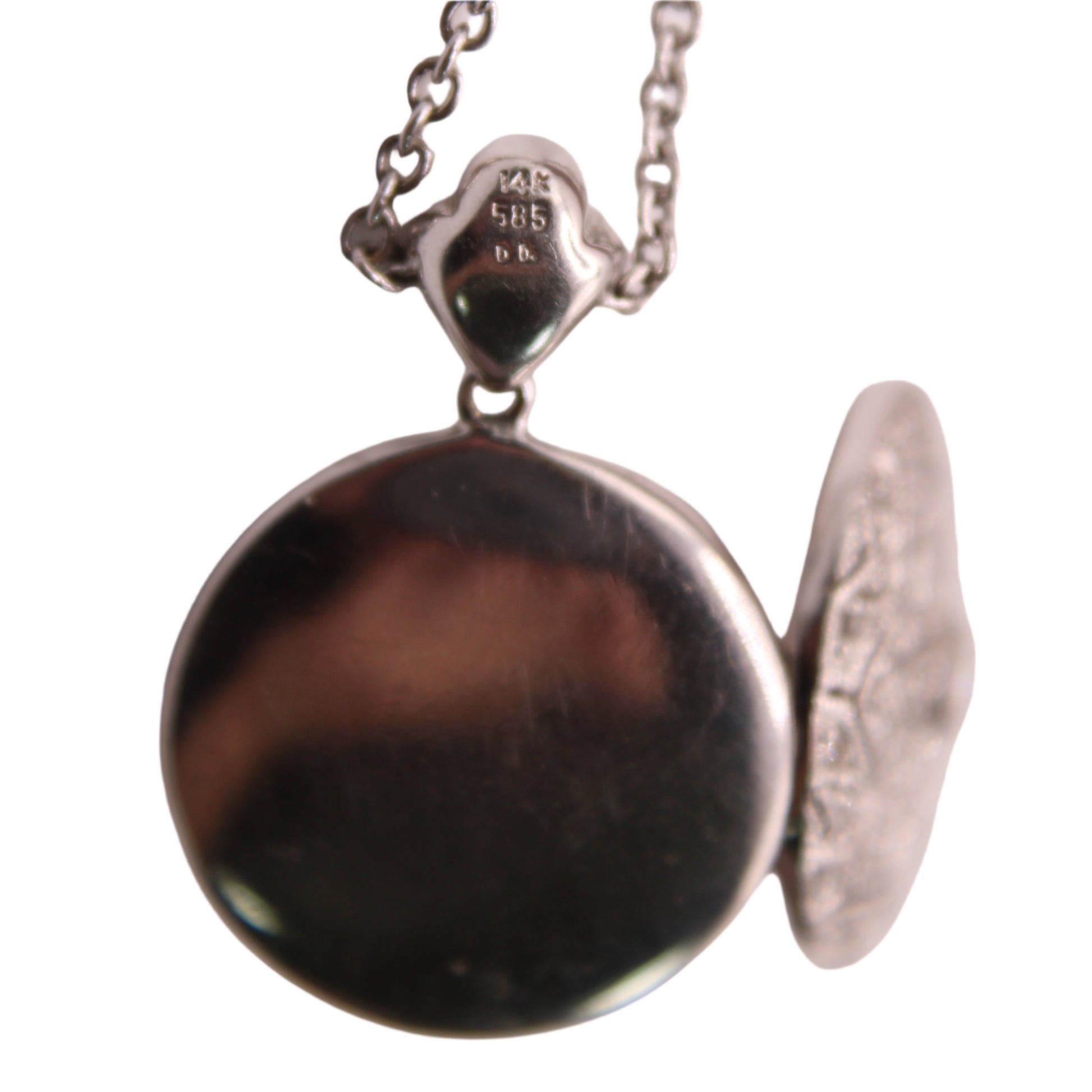 14kt White Gold Diamond Mandala Locket Station Chain Link Necklace 16"