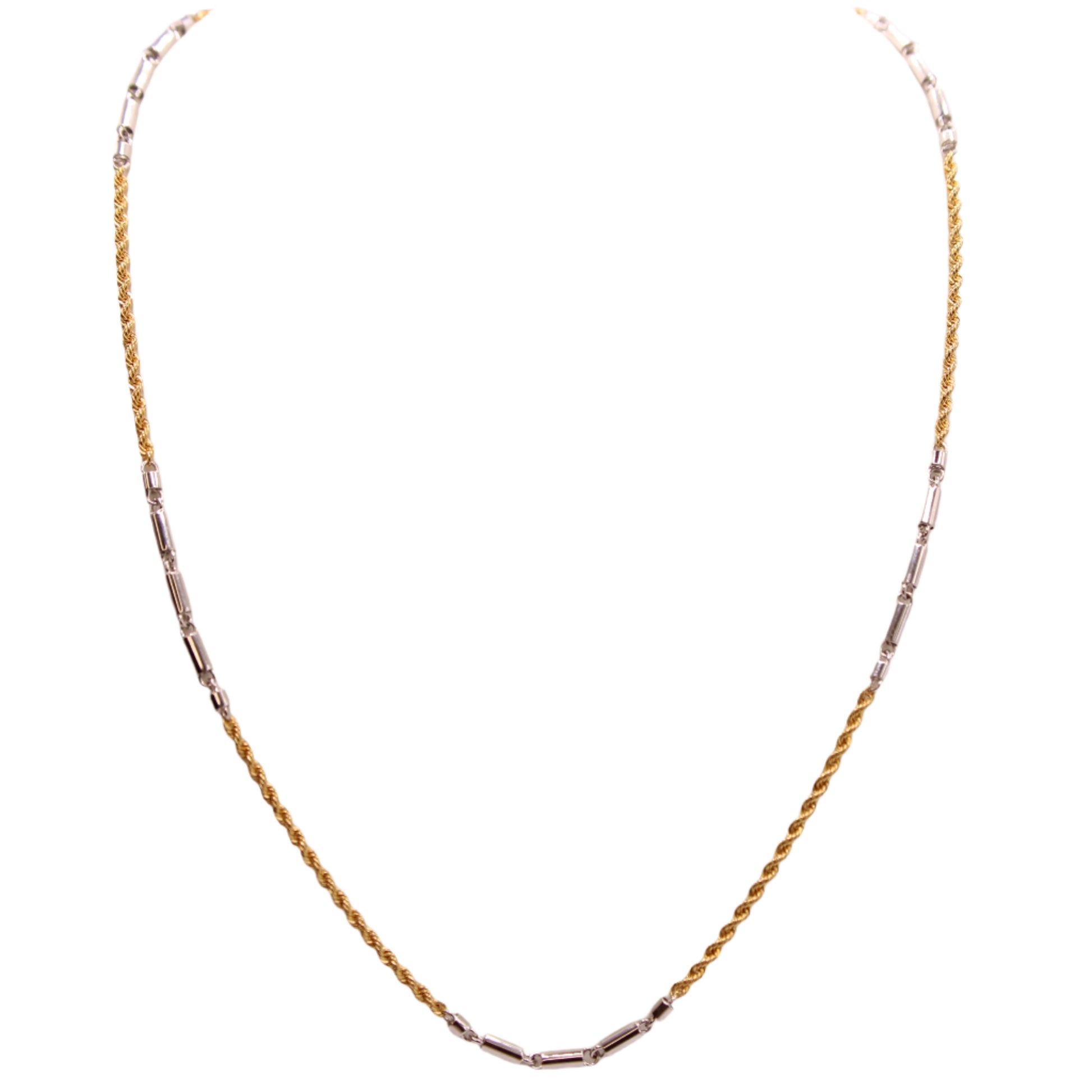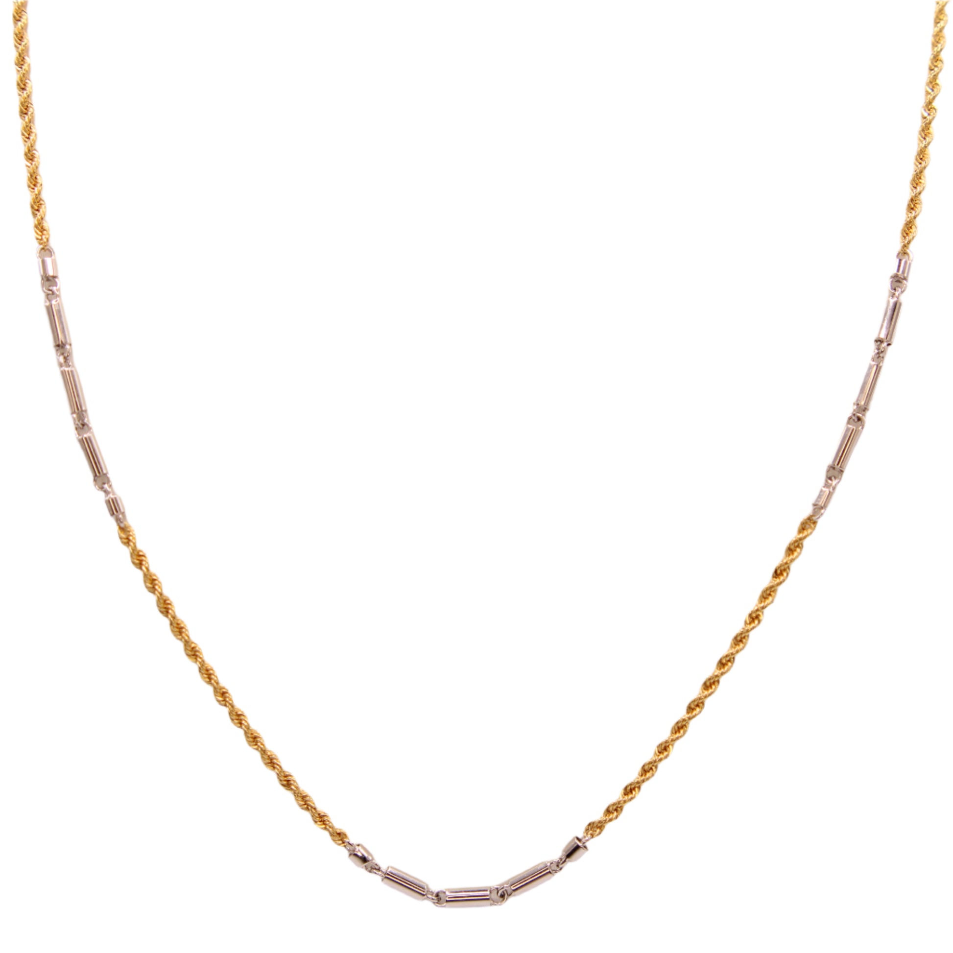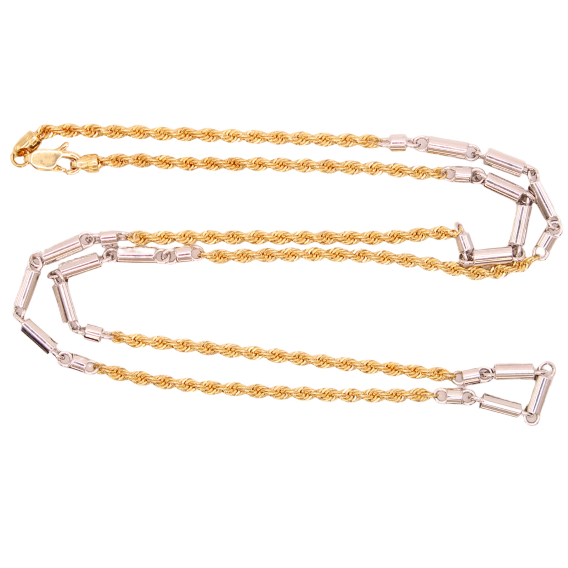 18kt Two Tone Yellow Rope White Bar Station Chain Necklace 17.75"