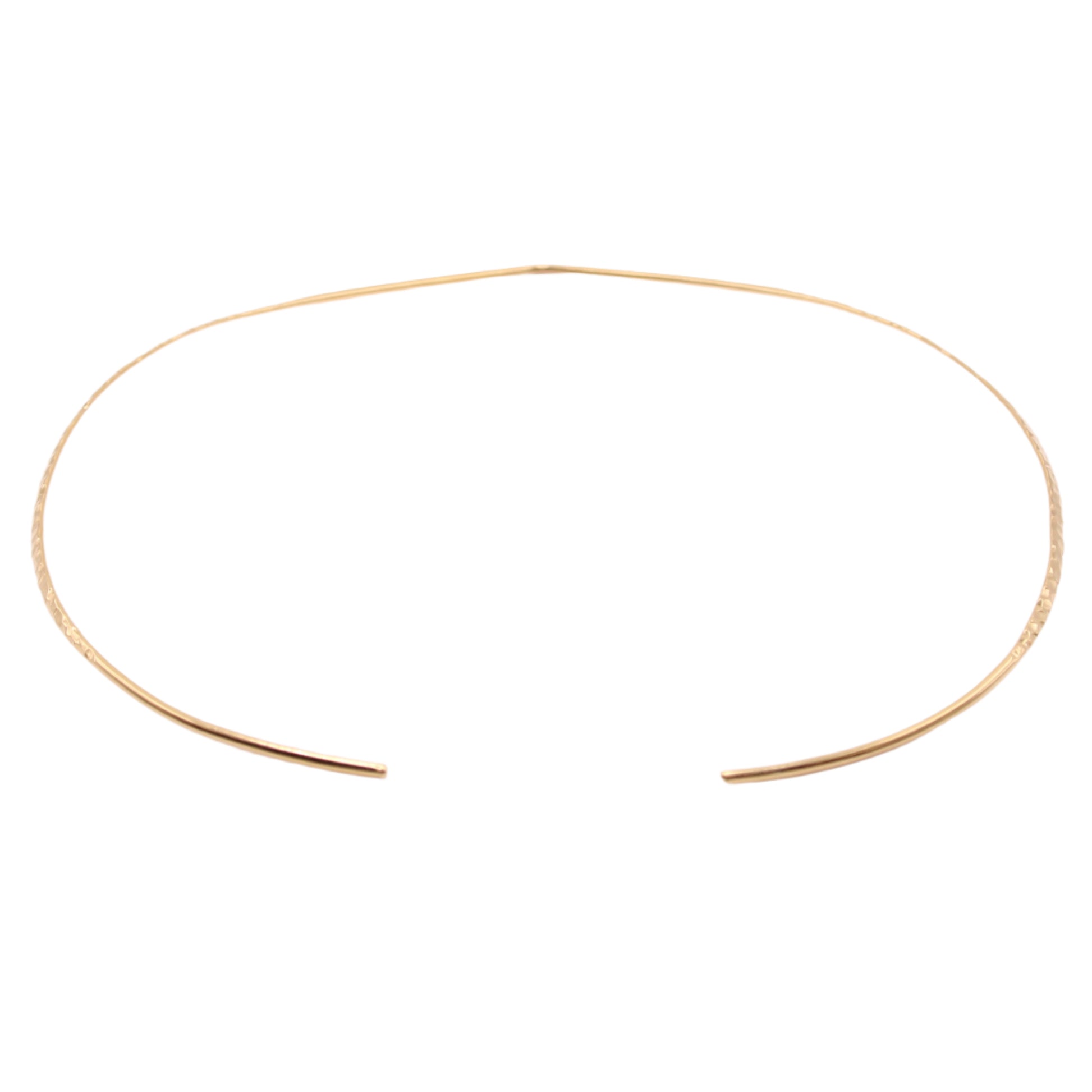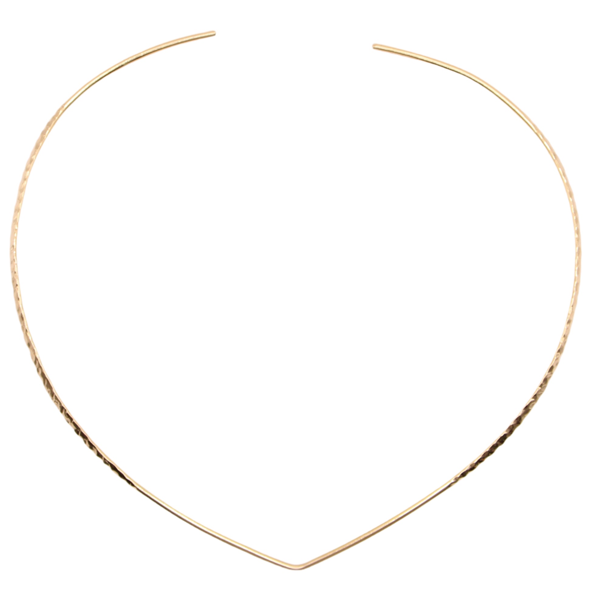 Adorn yourself with this incredibly rare pointed collar necklace in high polished & hammered finish crafted in solid 14k gold. Wears like a formed cuff for your neck and pendants can slide on quite easily. The point sits perfectly between the collar bones.