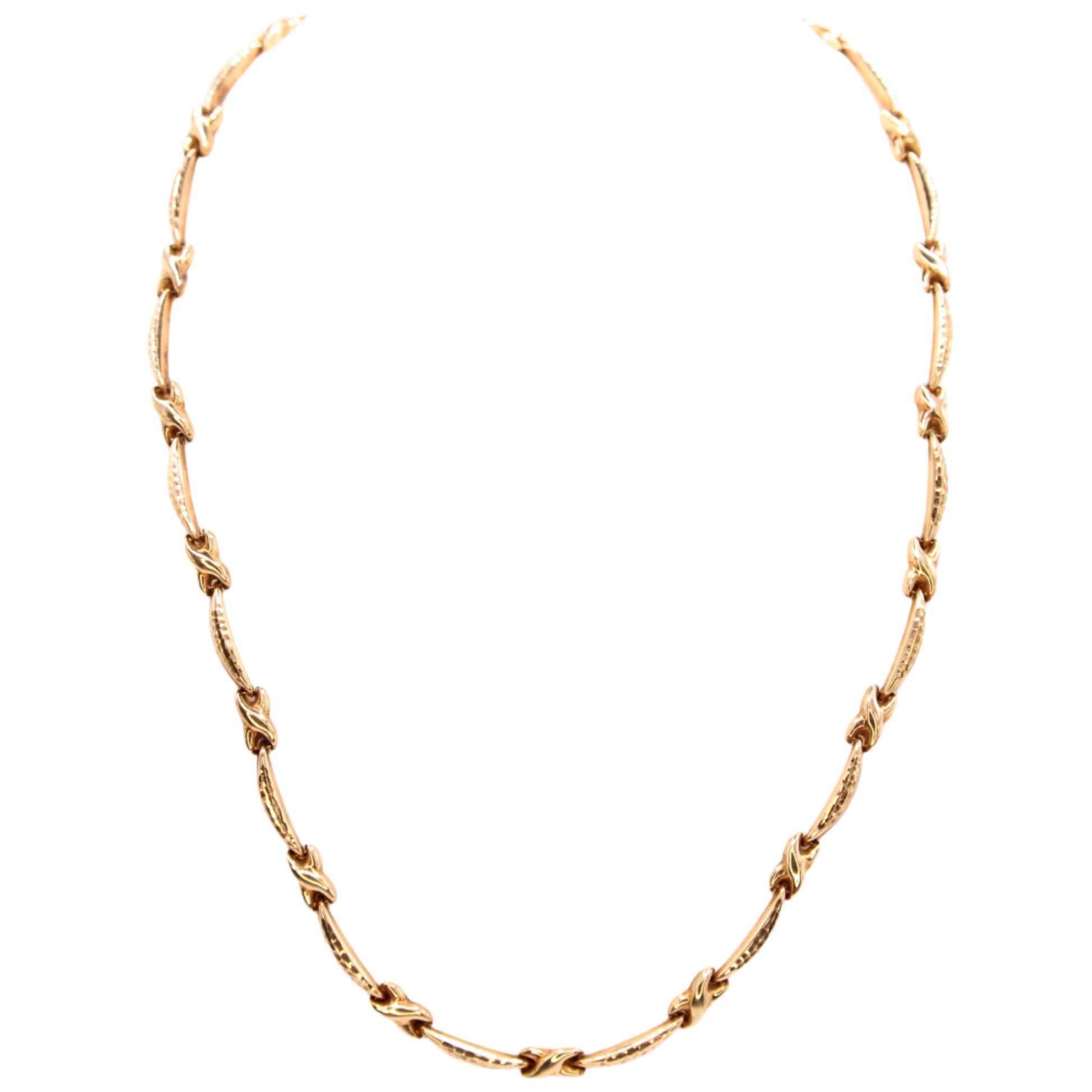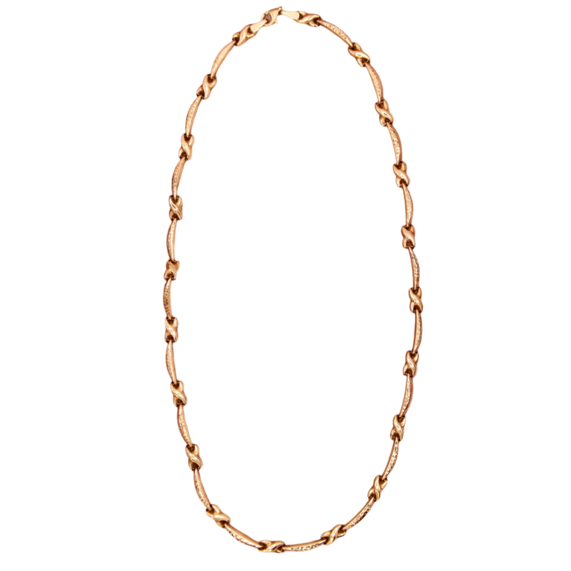 Treat yourself with this dazzling puffed alternating crossover bar link necklace crafted in solid 10k gold. The matching bracelet is also available in our collection!
