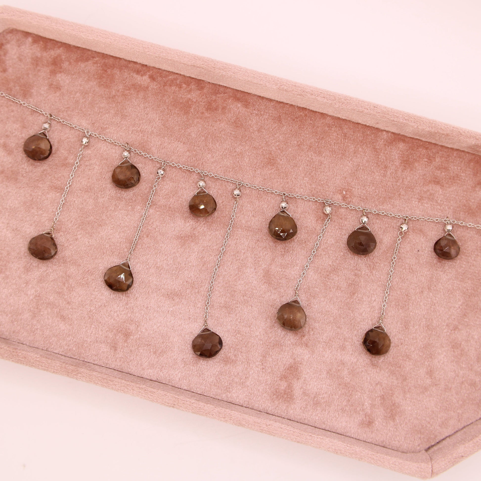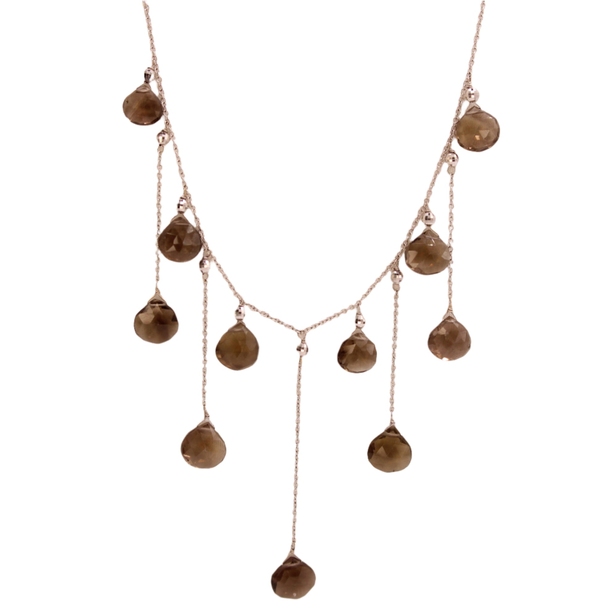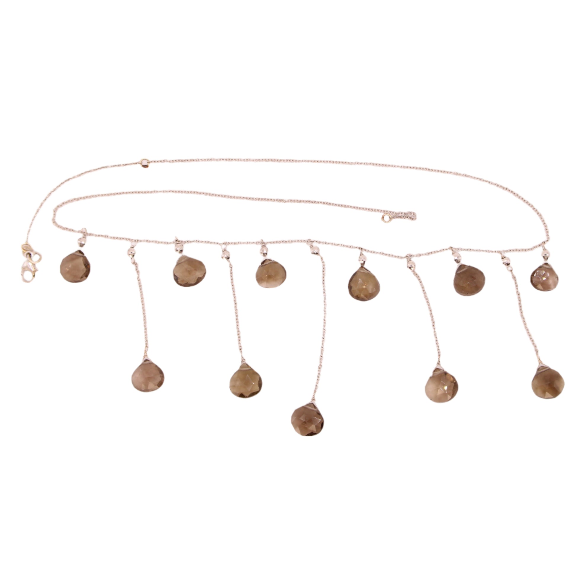 14kt White Gold Smoky Topaz Heart Briolette Fringe Dangle Collar Necklace