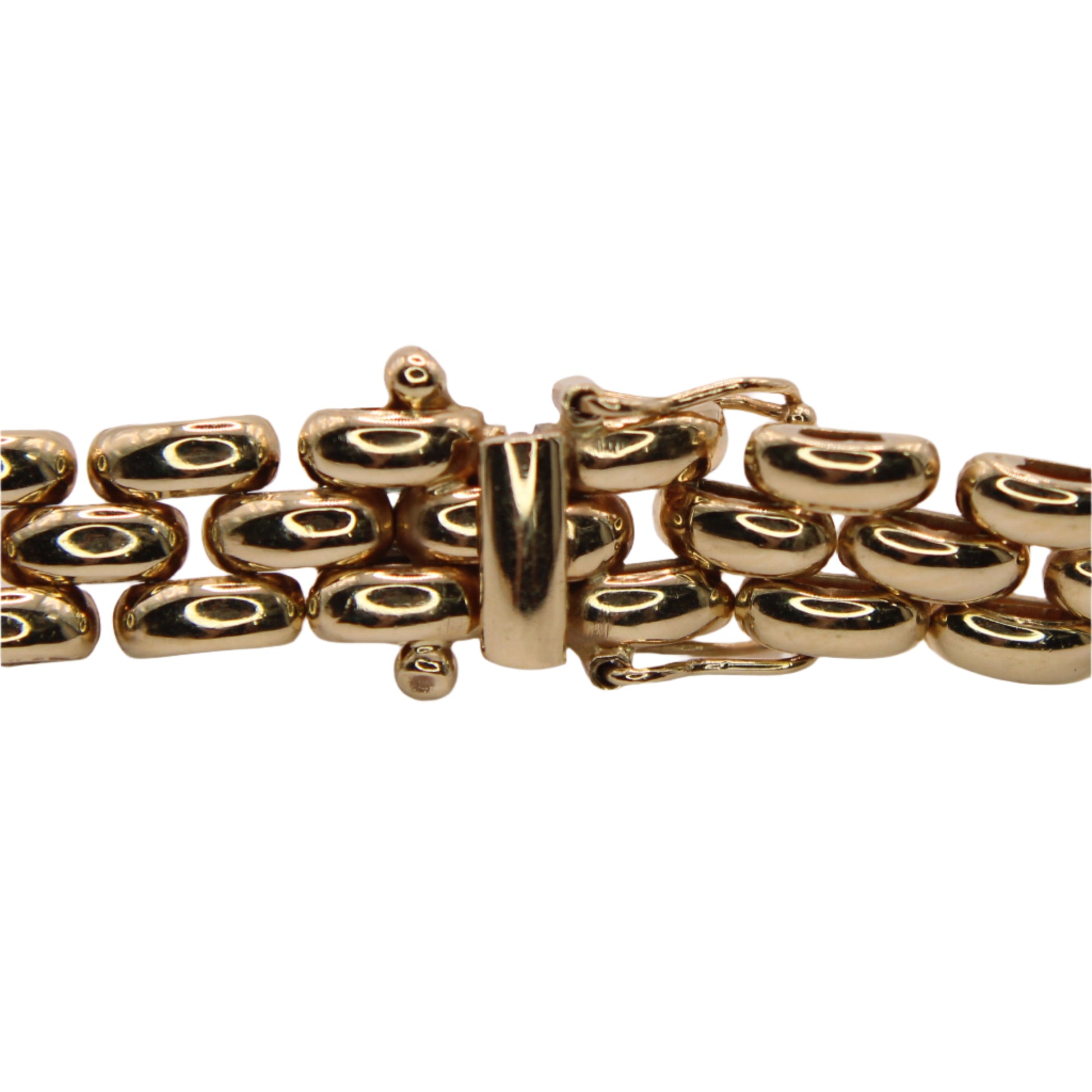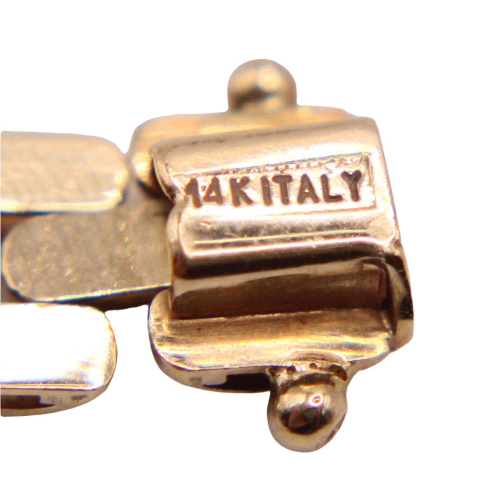 Spoil yourself with this gorgeous panther chain bracelet by Aurafin crafted in solid 14k gold. Puffed links with high polished finish and secure box tab closure with safety clasp.