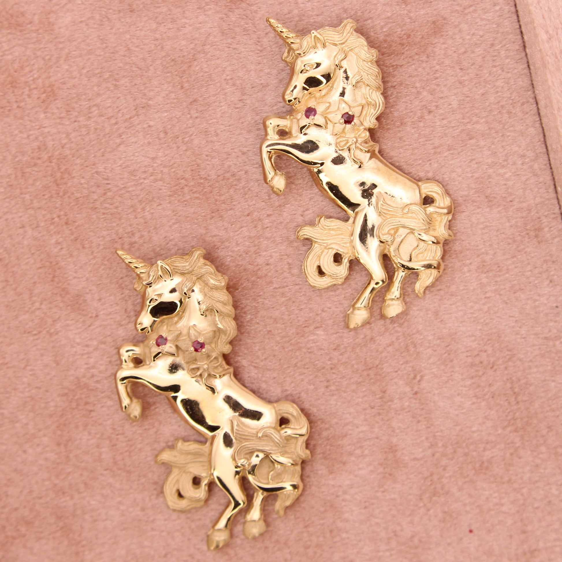 A very rare vintage collectible item - beautifully crafted and highly detailed unicorn with ruby pendant made by Gorham crafted in solid 10k yellow gold.