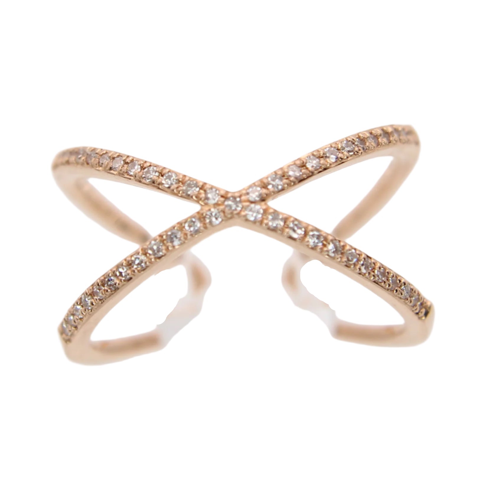 14kt Rose Gold Diamond 0.12 CT Crossover X Open Cuff Ring