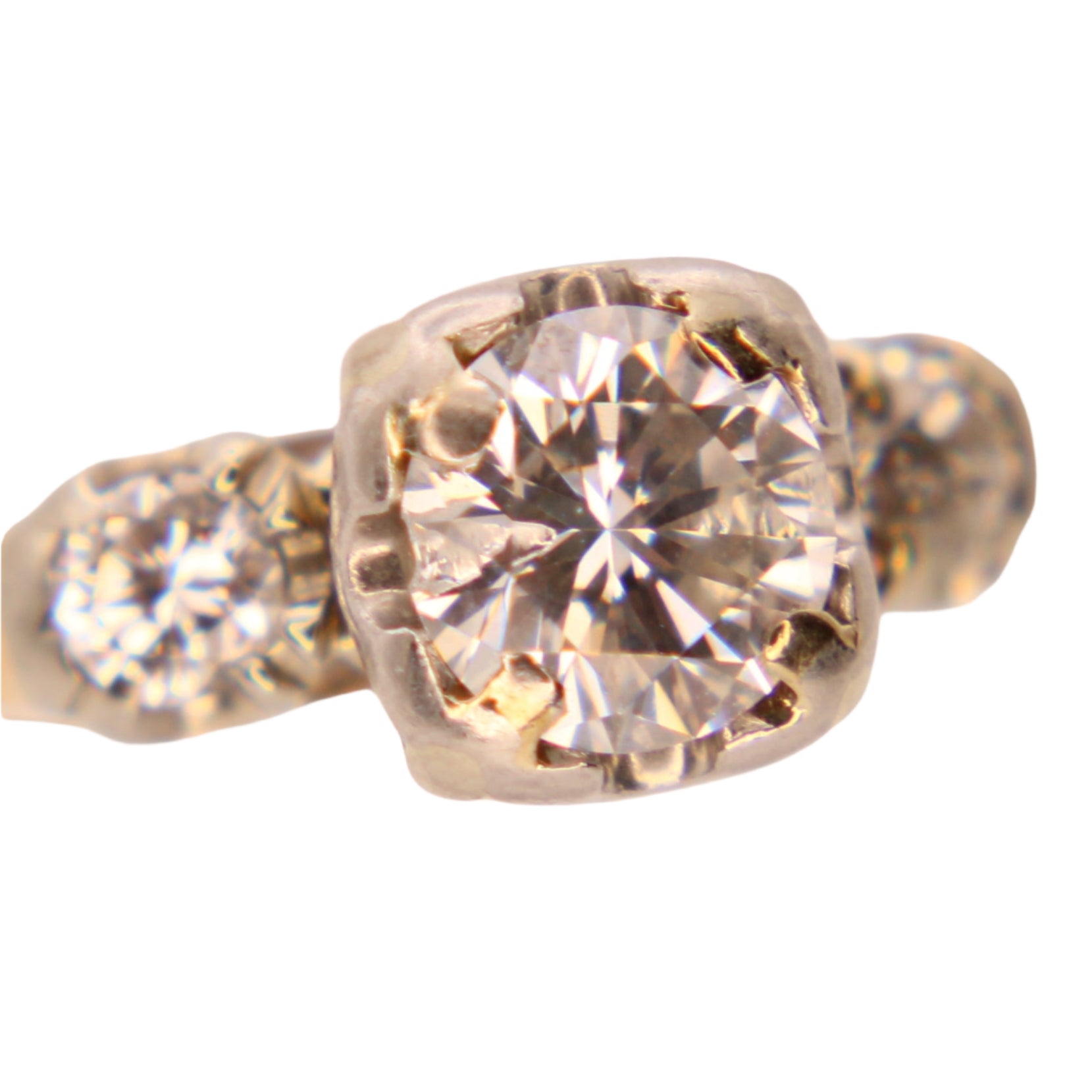 Antique 14kt Yellow White Two Tone Gold Diamond Engagement Wedding Ring