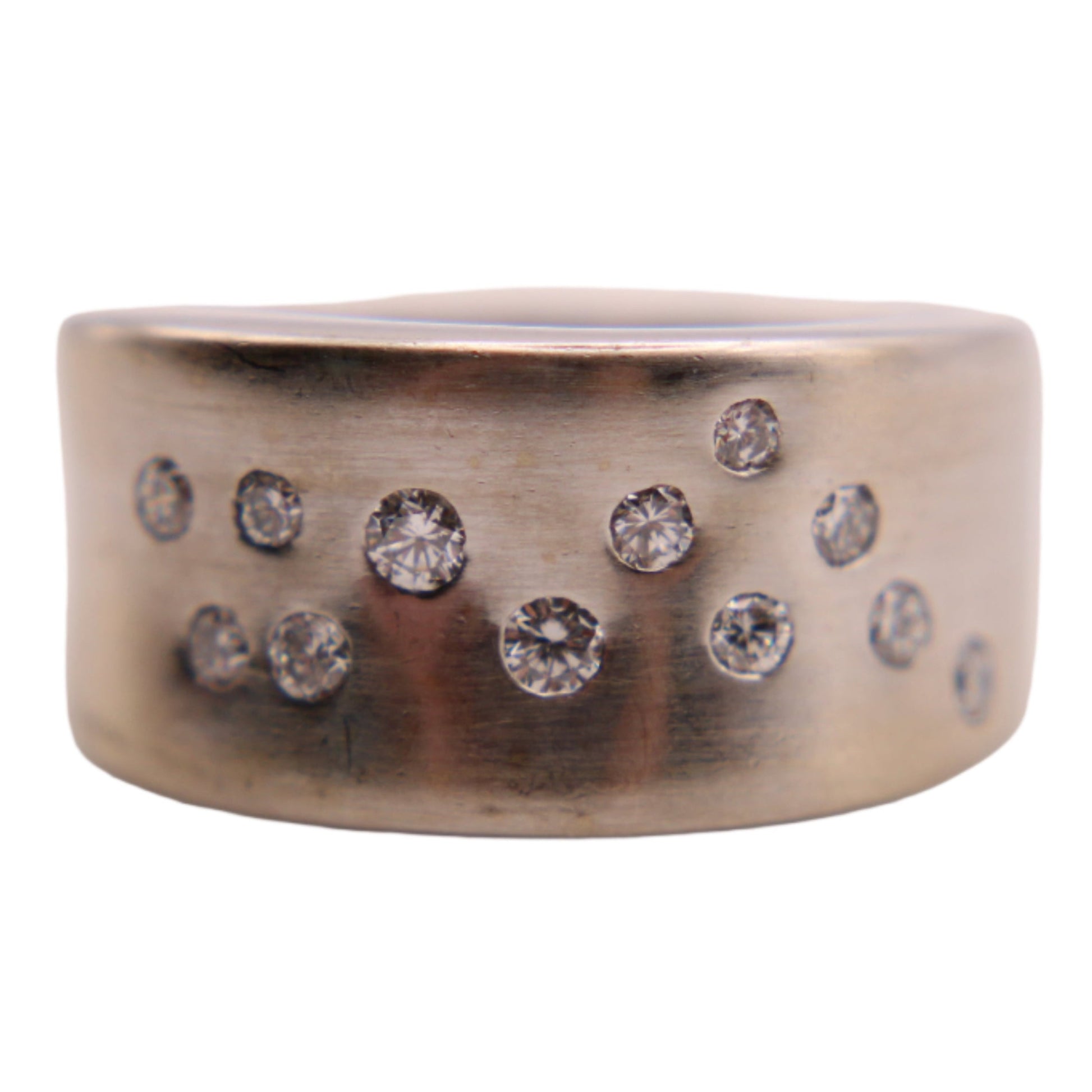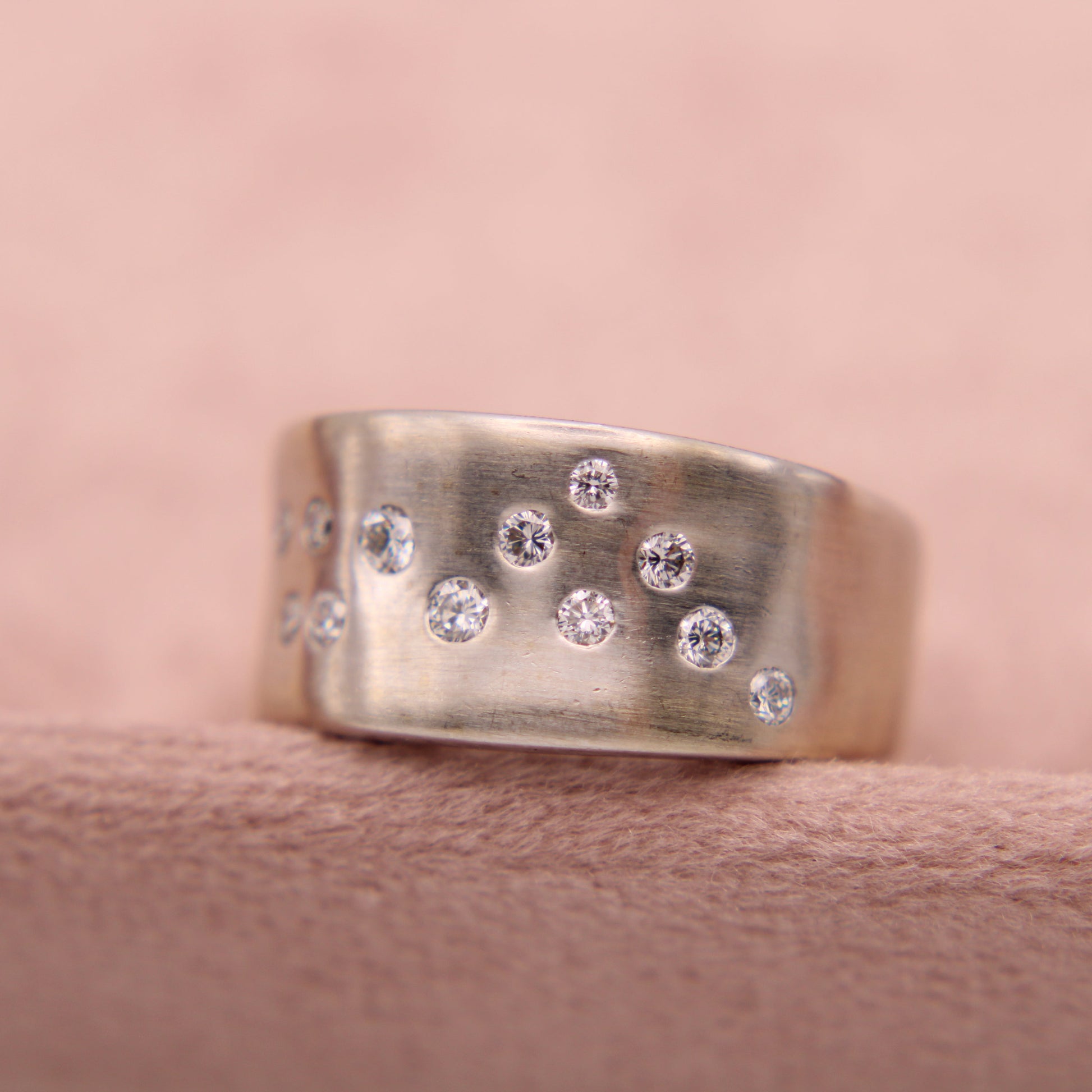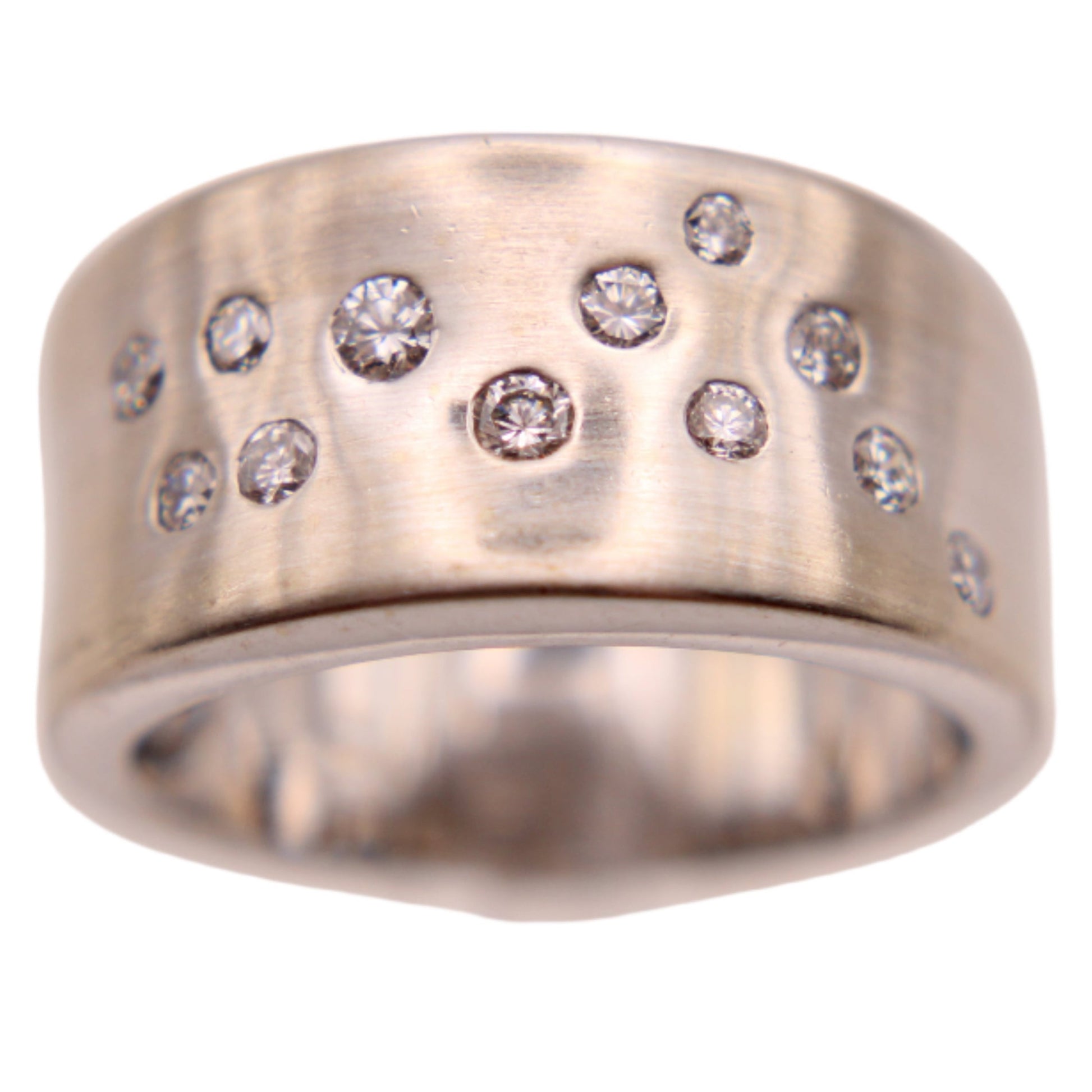 14kt White Gold Diamond Flush Set Constellation Scattered Satin Finish Ring