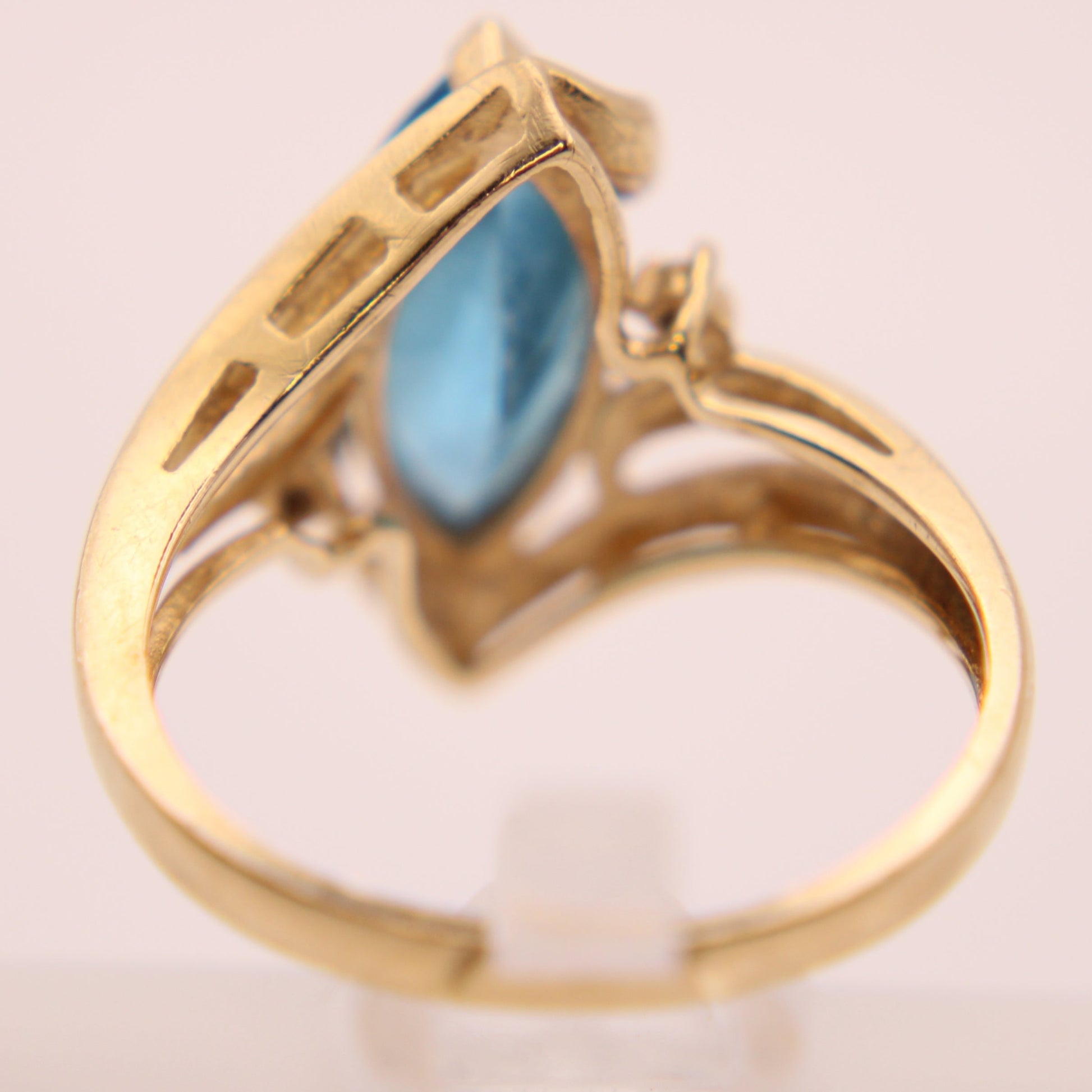 14kt Yellow Gold Diamond Blue Topaz Marquise Ribbon Wrap Cocktail Ring