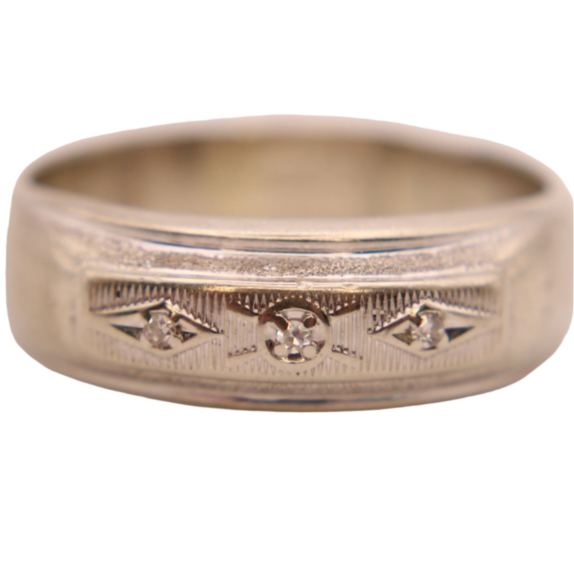 Antique 14kt White Gold Diamond Art Deco Wedding Engagement Band Ring