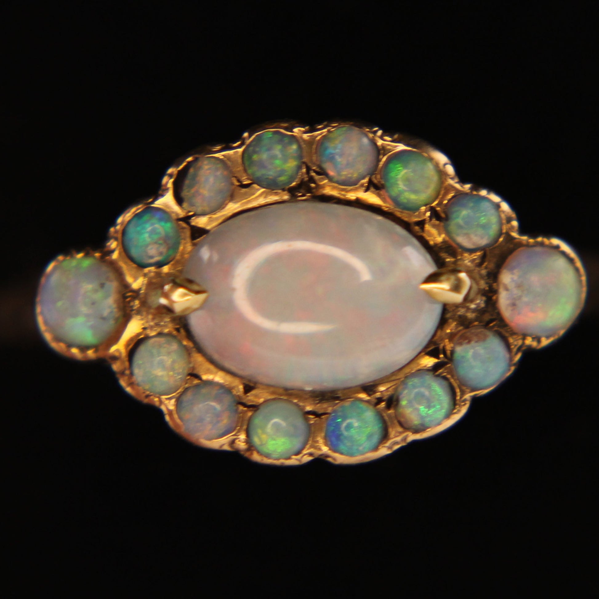 *SOLD* Antique 14kt Yellow Gold Victorian Opal Halo Cluster Ring