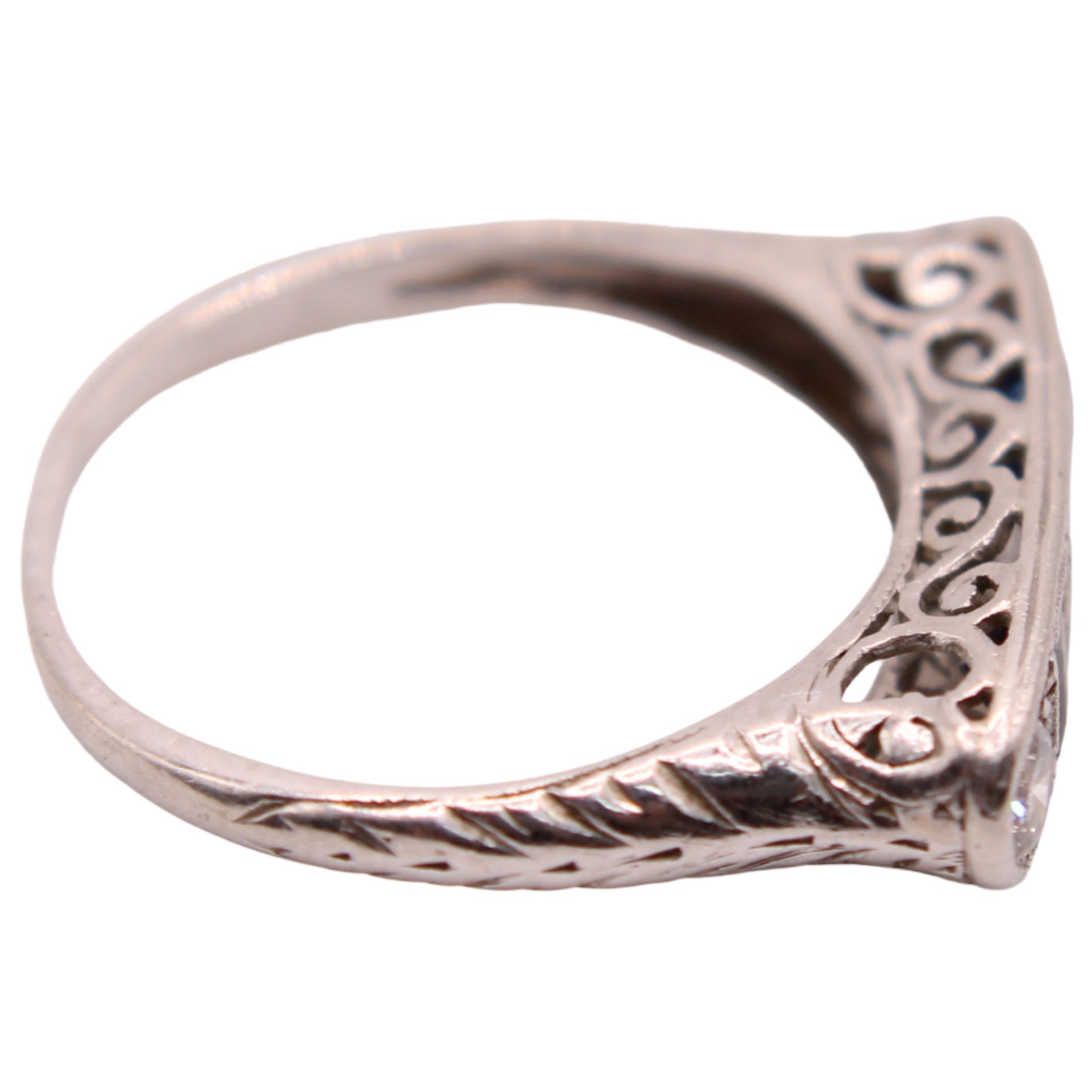 Antique Art Deco Platinum Diamond Sapphire Filigree Stacker Ring 6.25